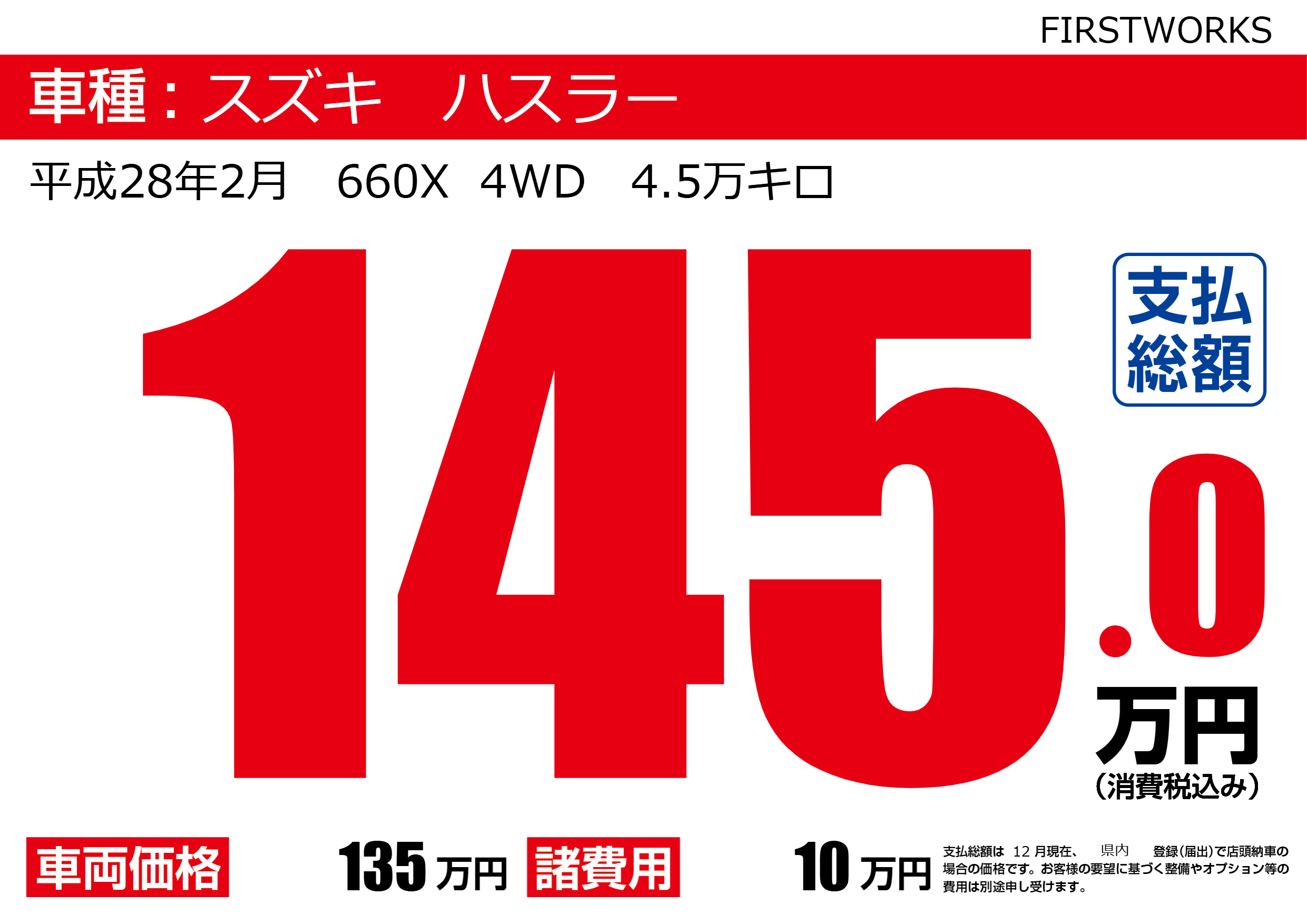 | 車名 | スズキ ハスラー | グレード ミッション 排気量 |