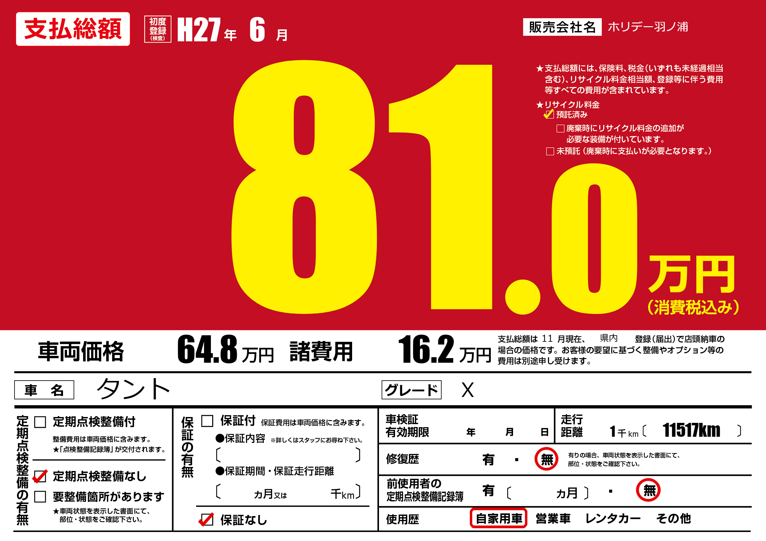 | 初年度登録 | H27年6月 | ||