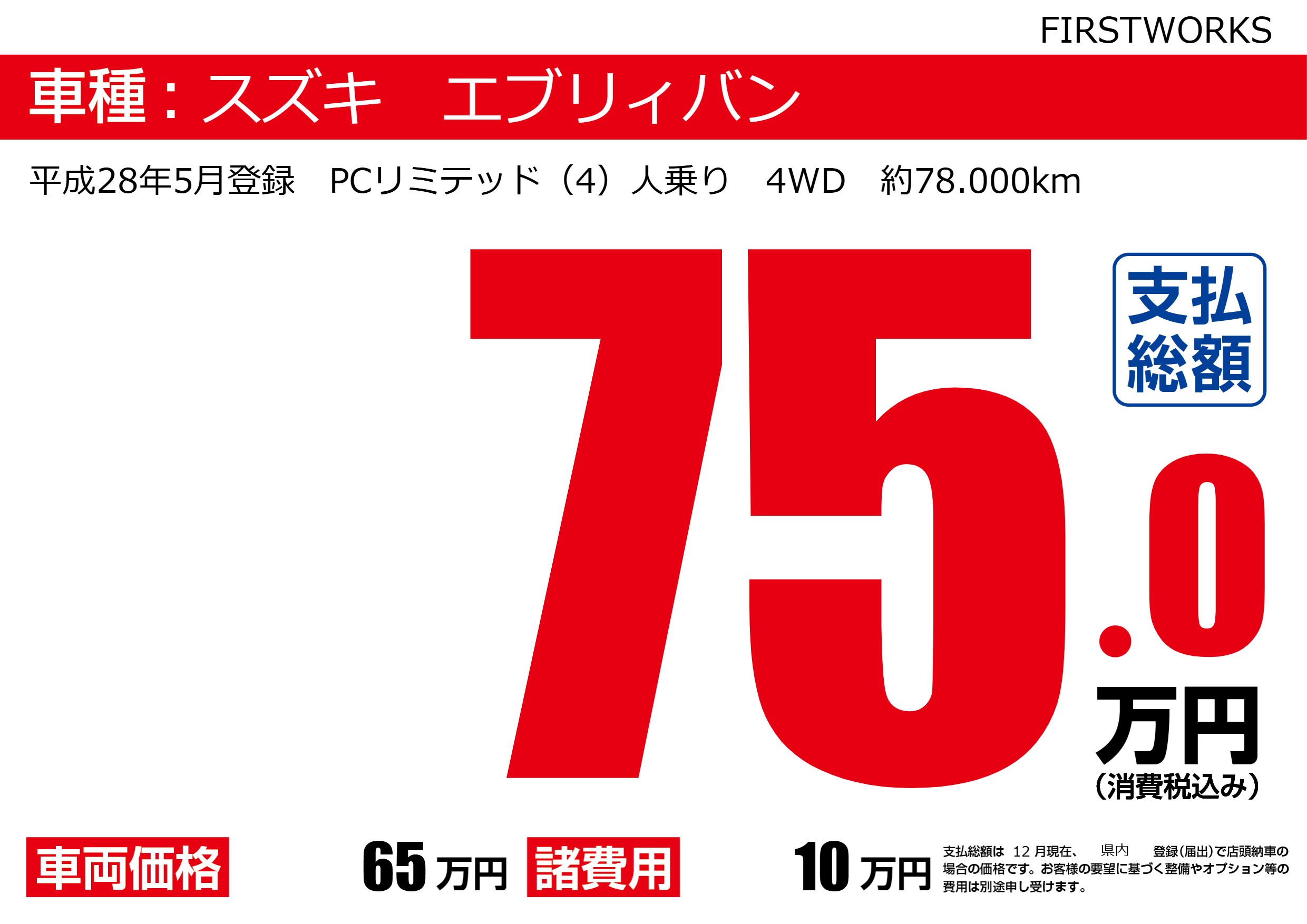 | 車名 | スズキ エブリィバン | グレード ミッション 排気量 |