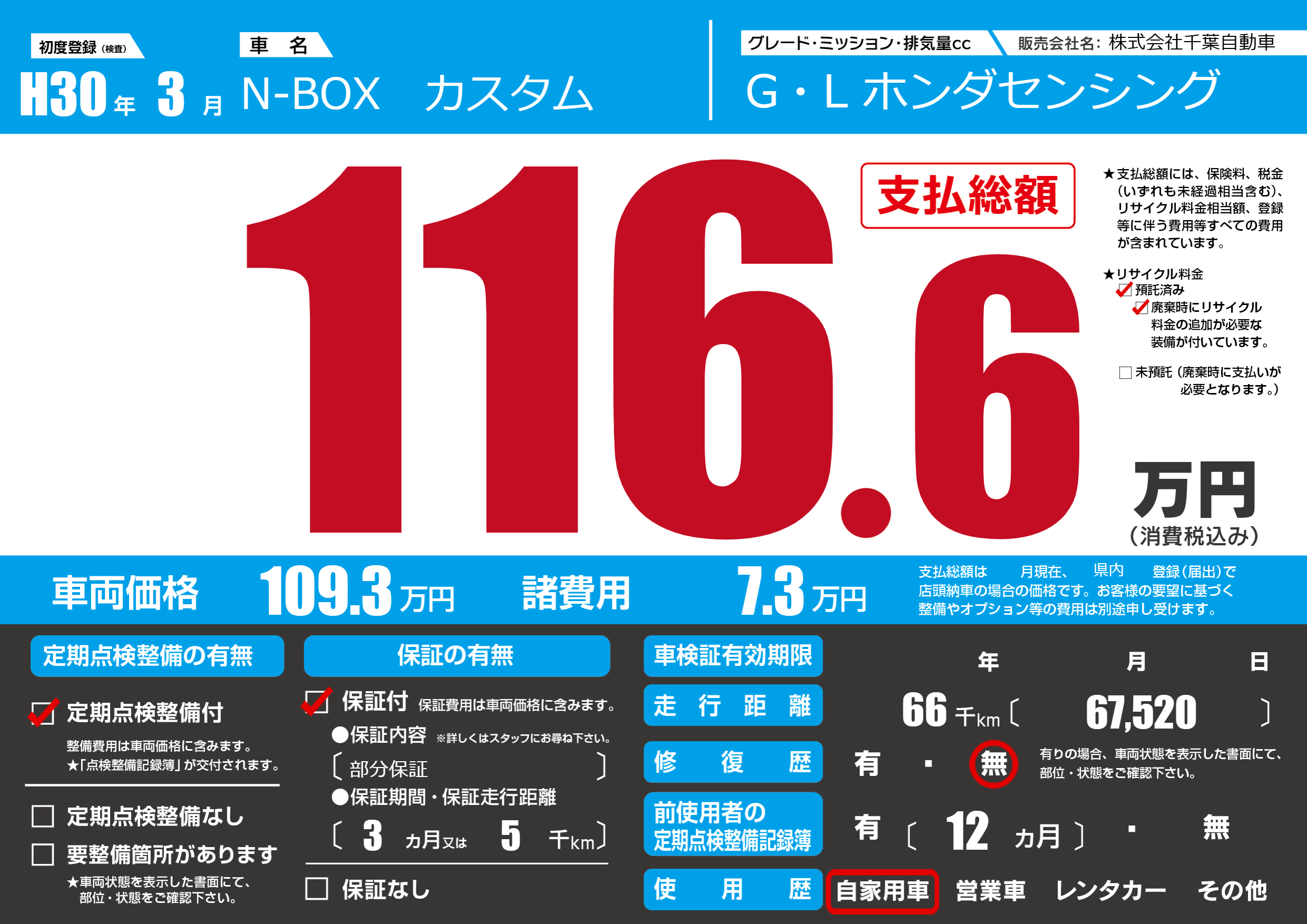 | 車名 | N-BOX カスタム | グレード ミッション 排気量 |