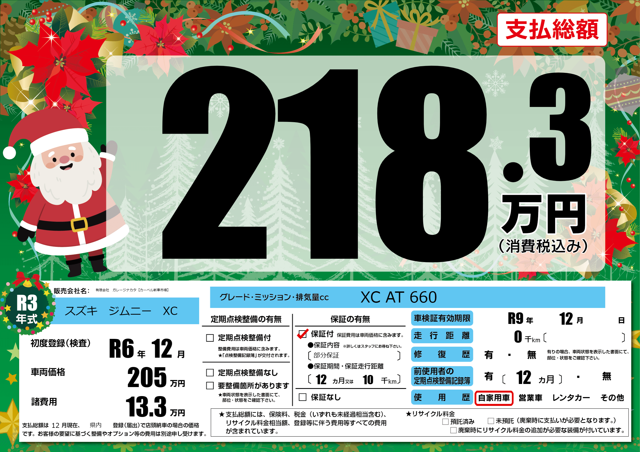 | 走行キロ | - | 初年度登録 | R6年12月 |