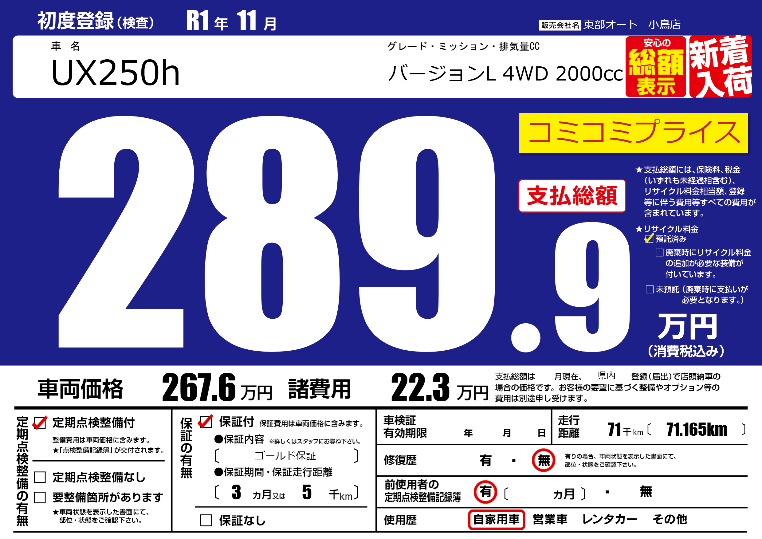 保証付き 保証内容( ゴールド保証) 3ヶ月または5千km |