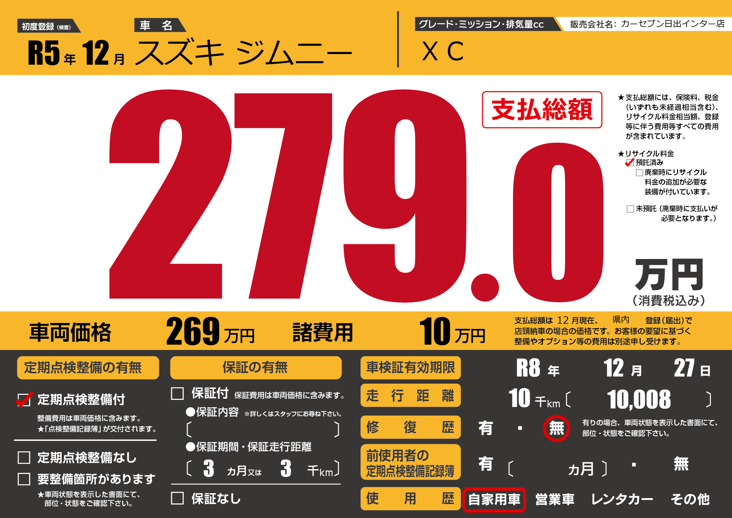 | 車検制限 | R8年 12月 27日 | ||