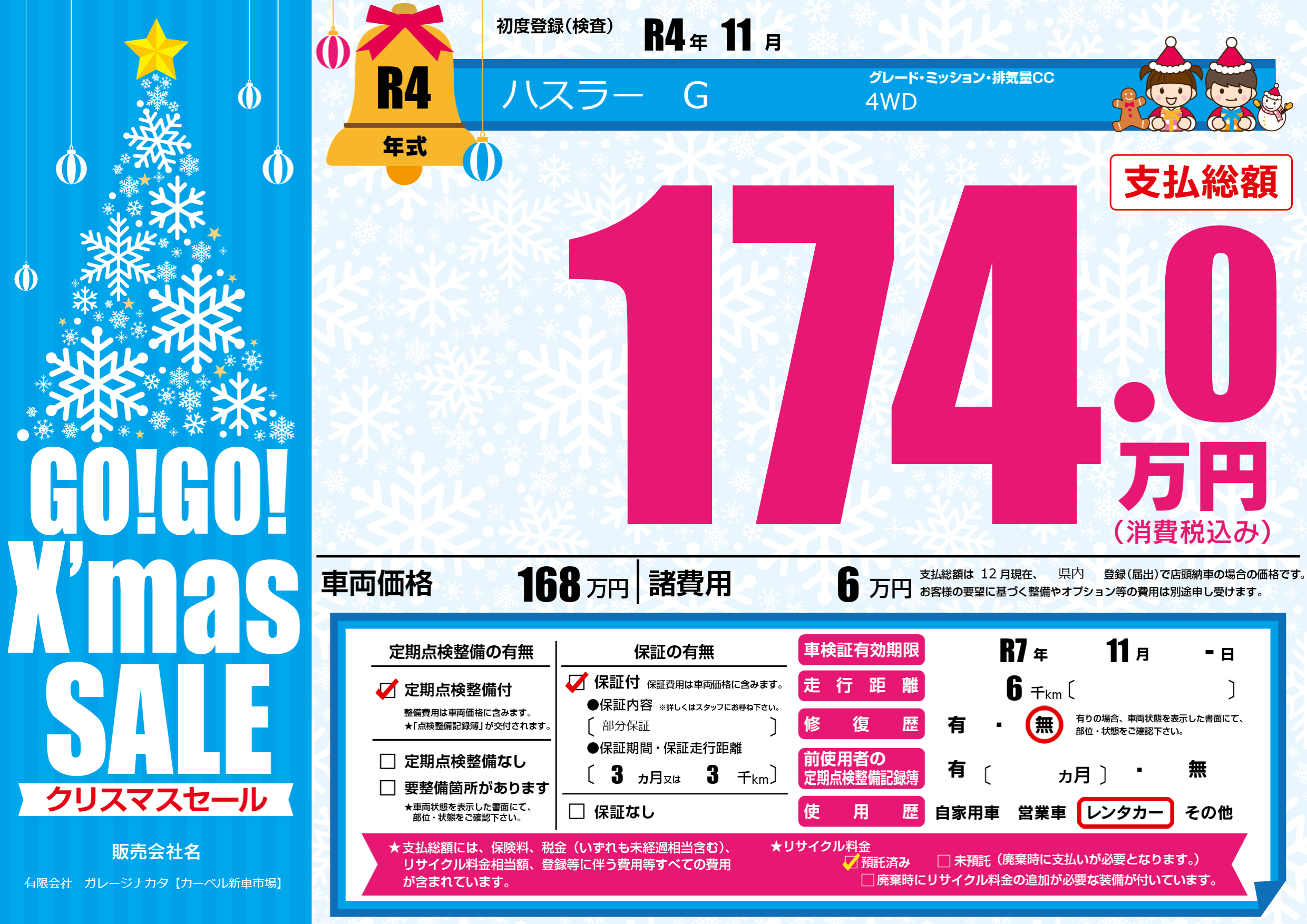 | 車名 | ハスラー G | グレード ミッション 排気量 |