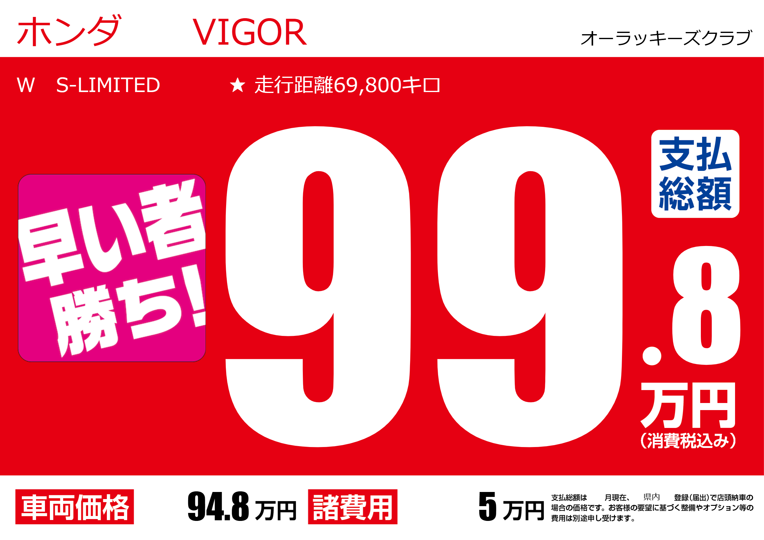 | 車名 | ホンダ VIGOR | グレード ミッション 排気量 |