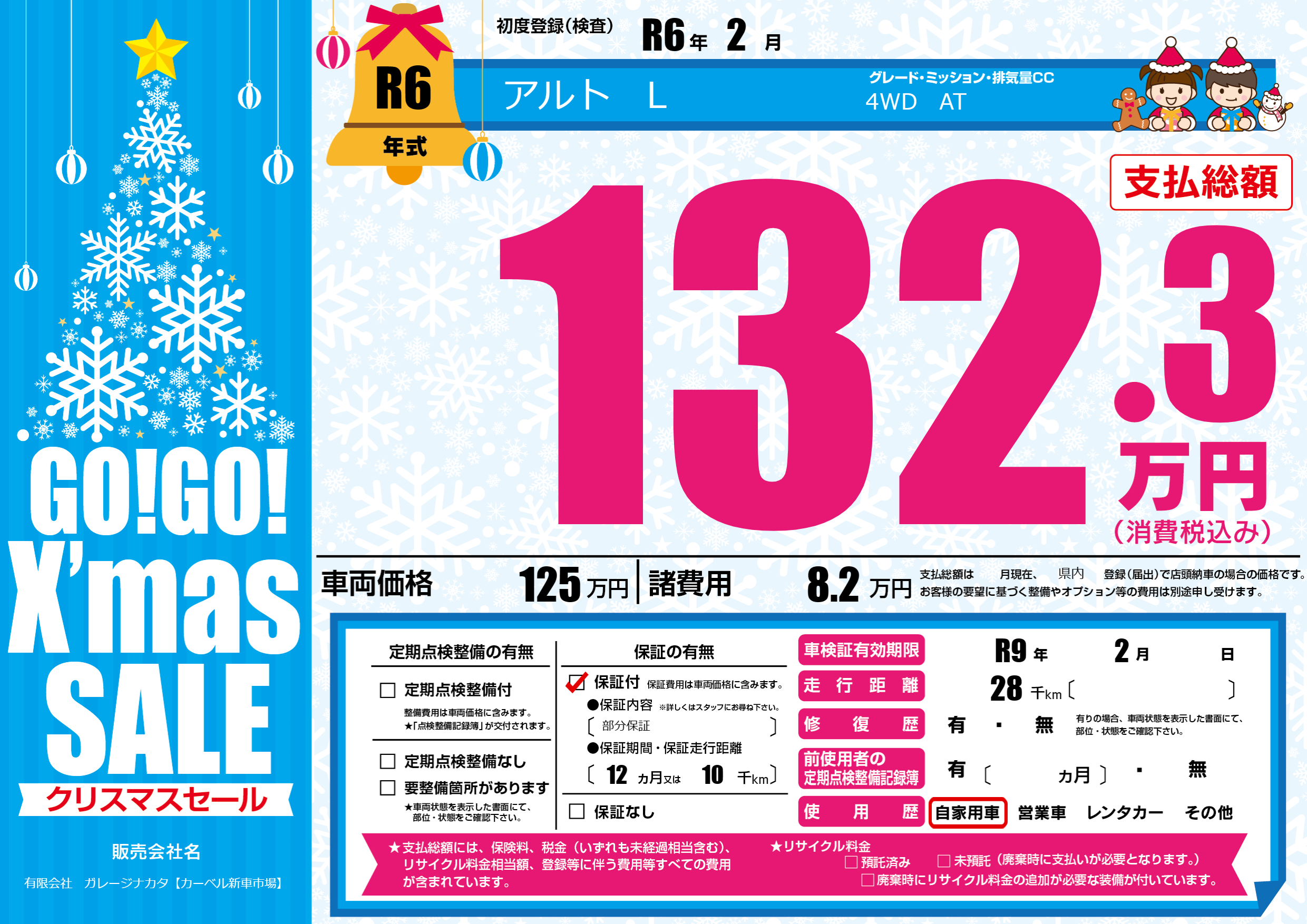 | 車名 | アルト L | グレード ミッション 排気量 |