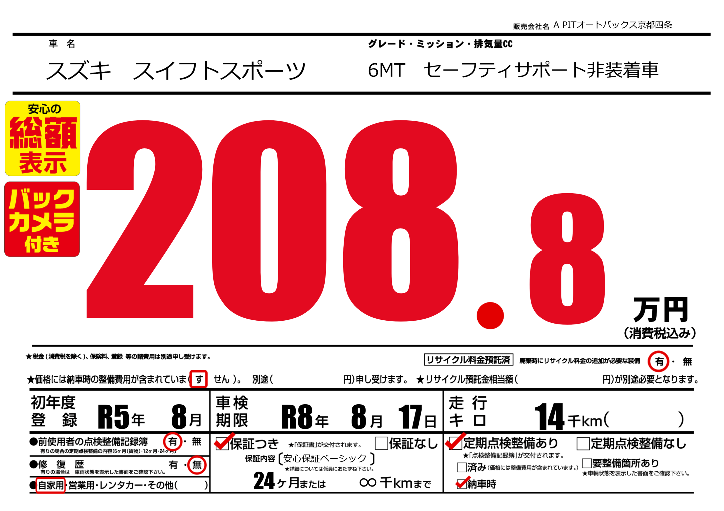 あり | 車検制限 | R8年8月17月 |