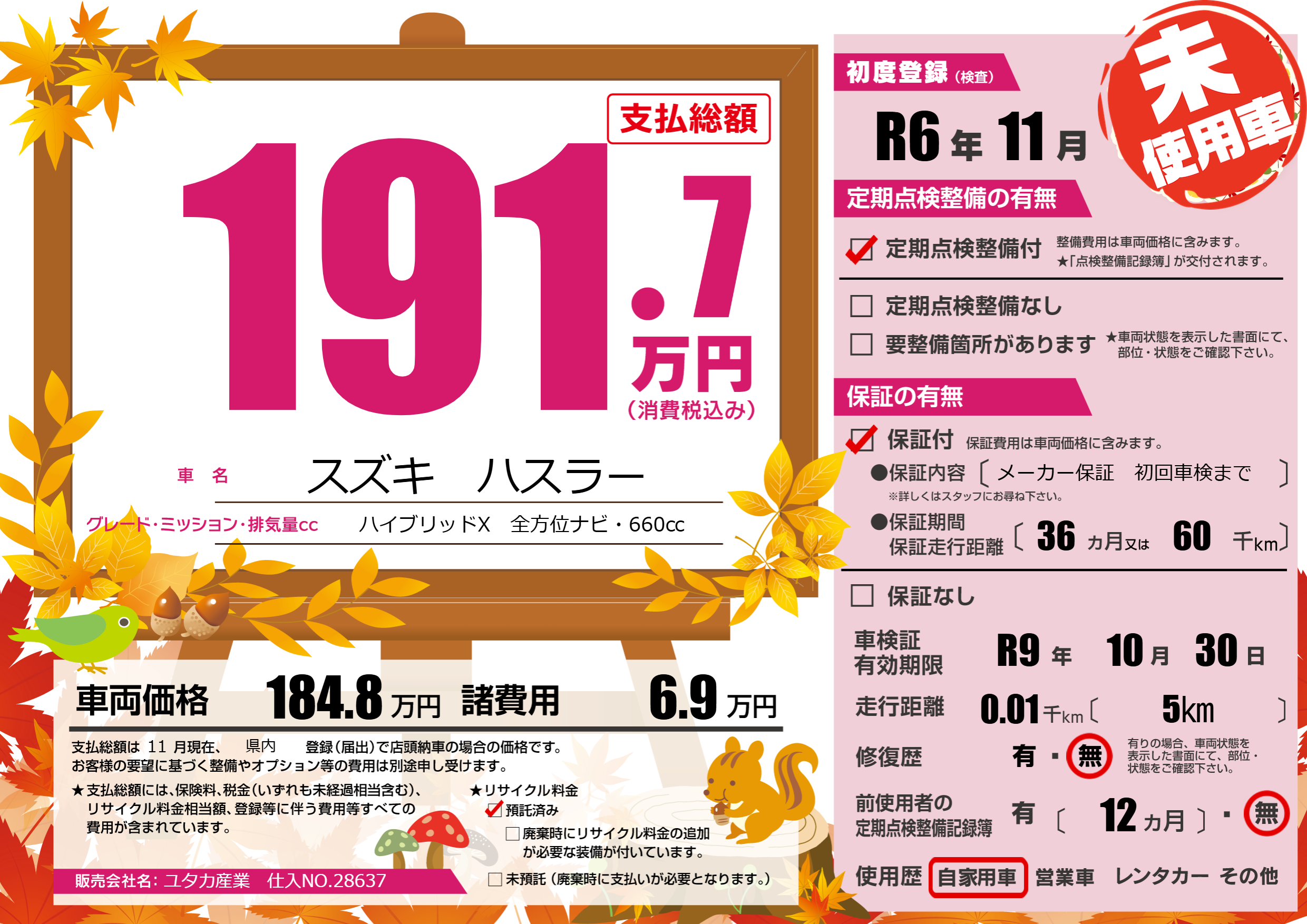 | 走行キロ | - | 初年度登録 | R6年11月 |