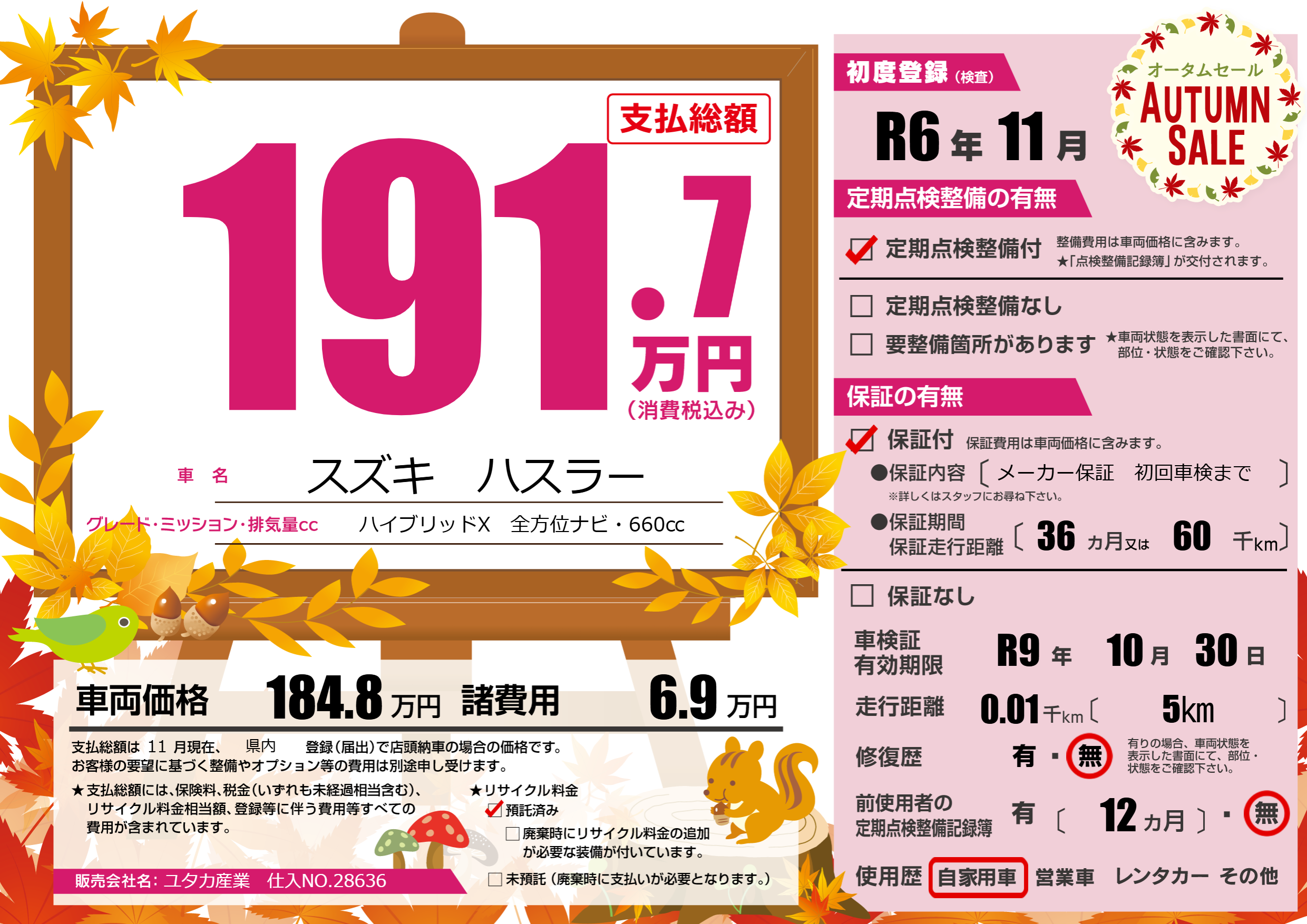 | 走行キロ | - | 初年度登録 | R6年11月 |