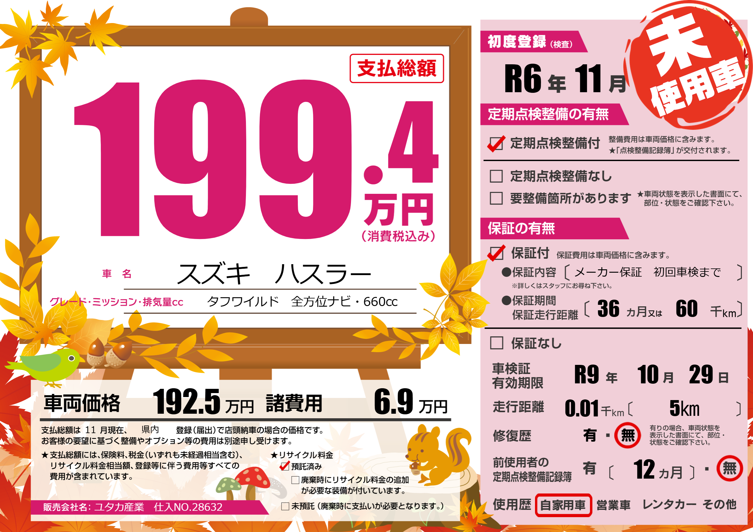 | 走行キロ | - | 初年度登録 | R6年11月 |