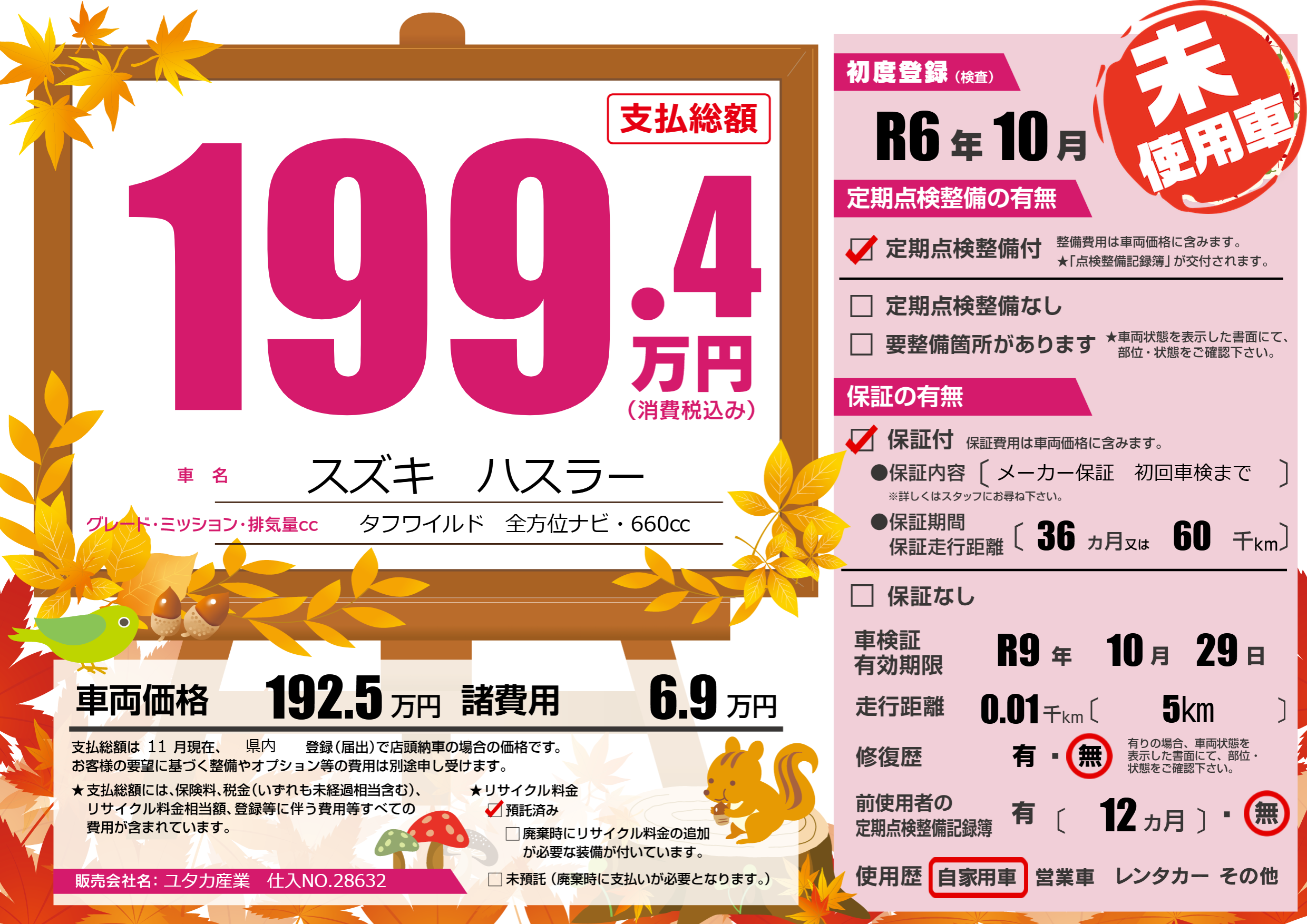 なし | 車検制限 | R9年10月29月 |