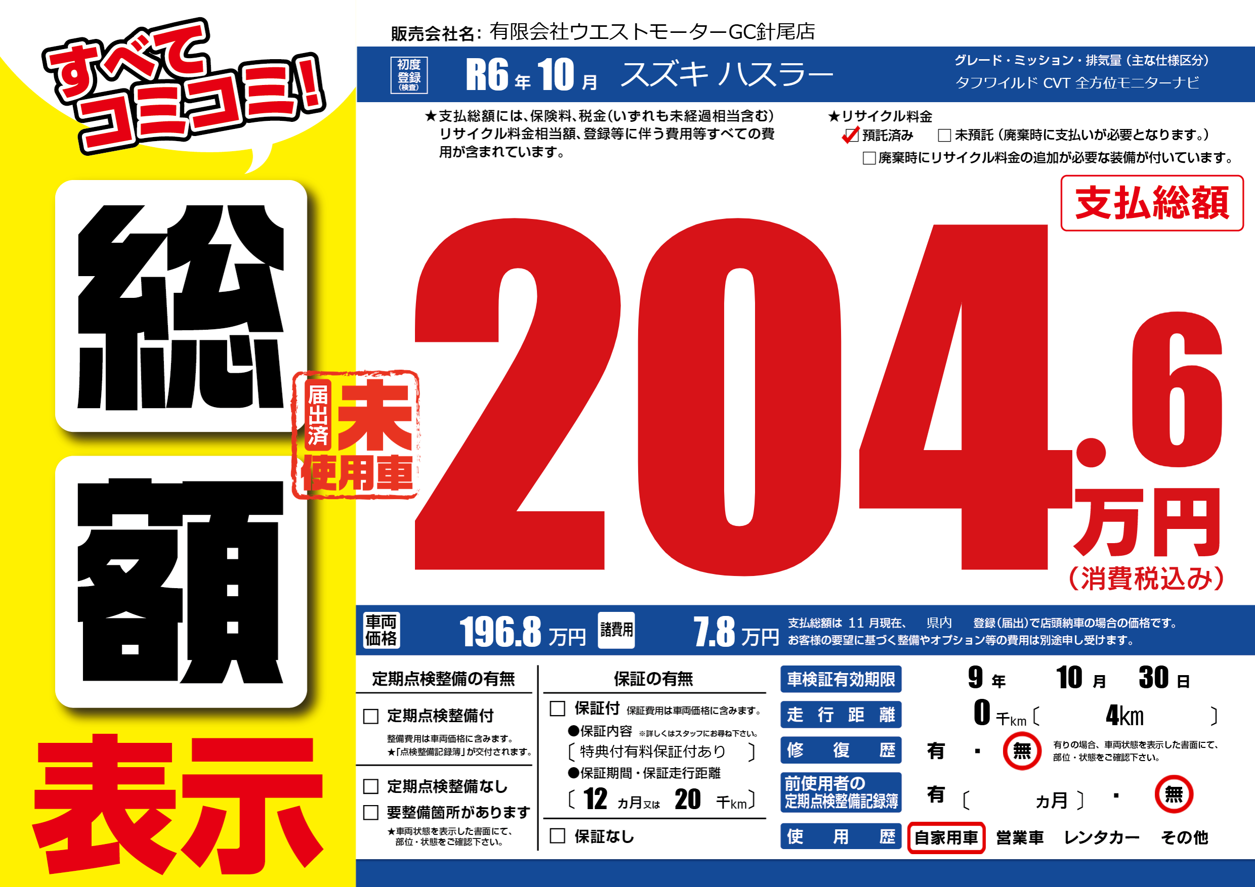 | 走行キロ | - | 初年度登録 | R6年10月 |
