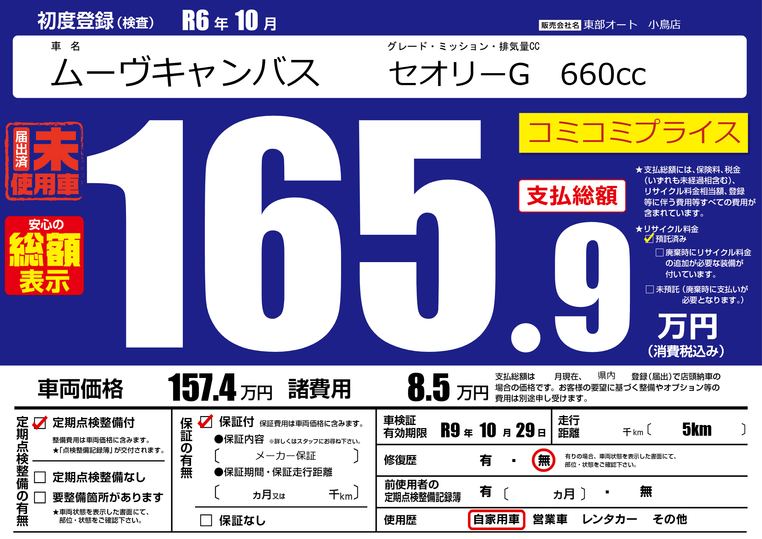 | 走行キロ | - | 初年度登録 | R6年10月 |