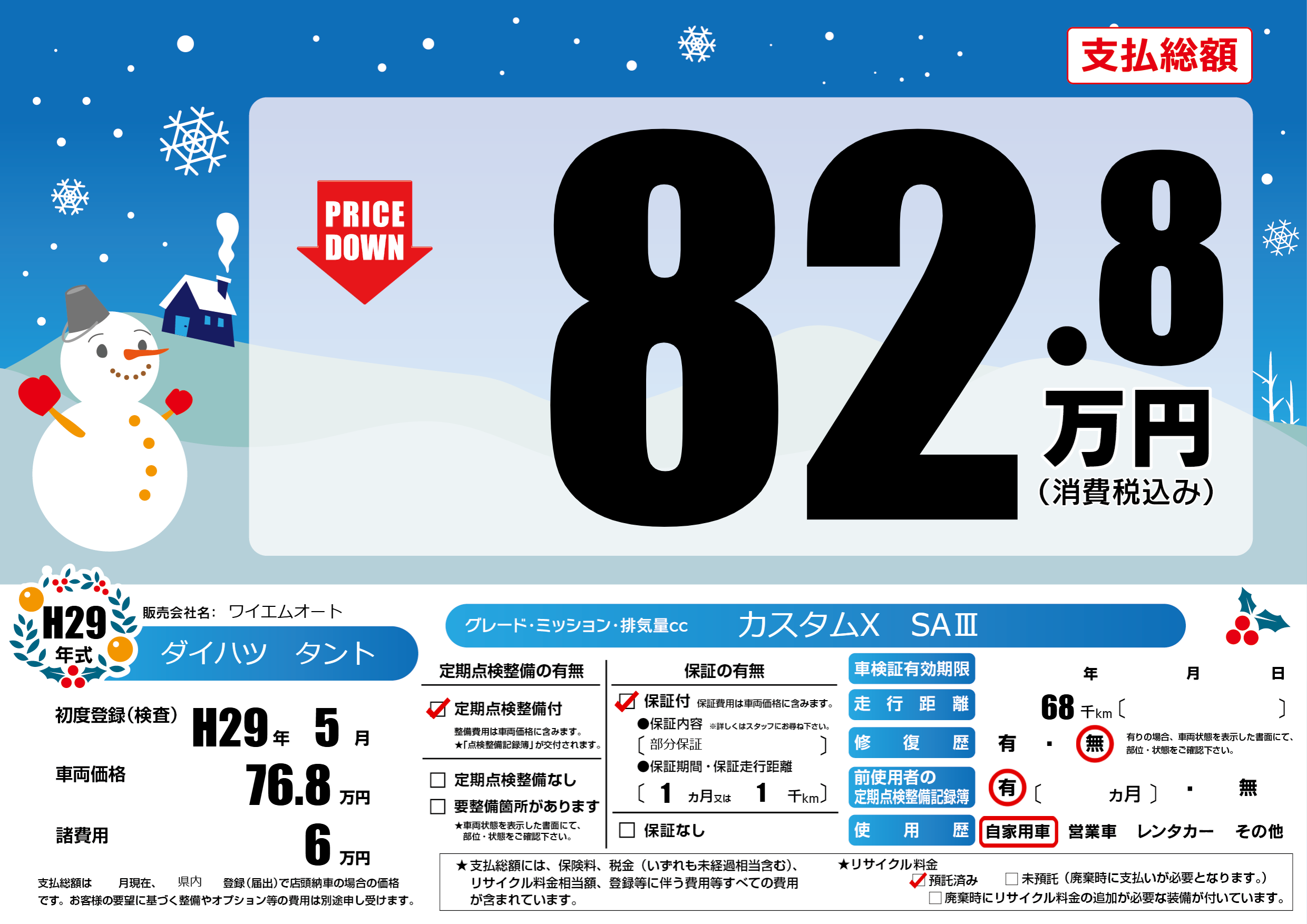 | 走行キロ | 6.8万km | 初年度登録 | H29年5月 |