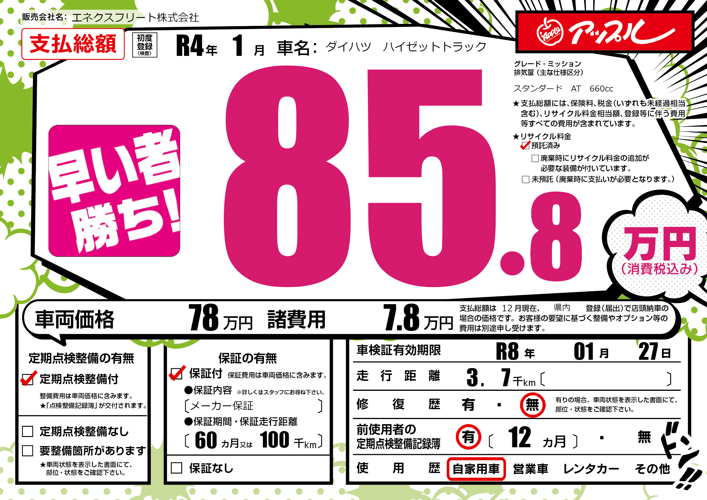 なし | 車検制限 | R8年01月27月 |