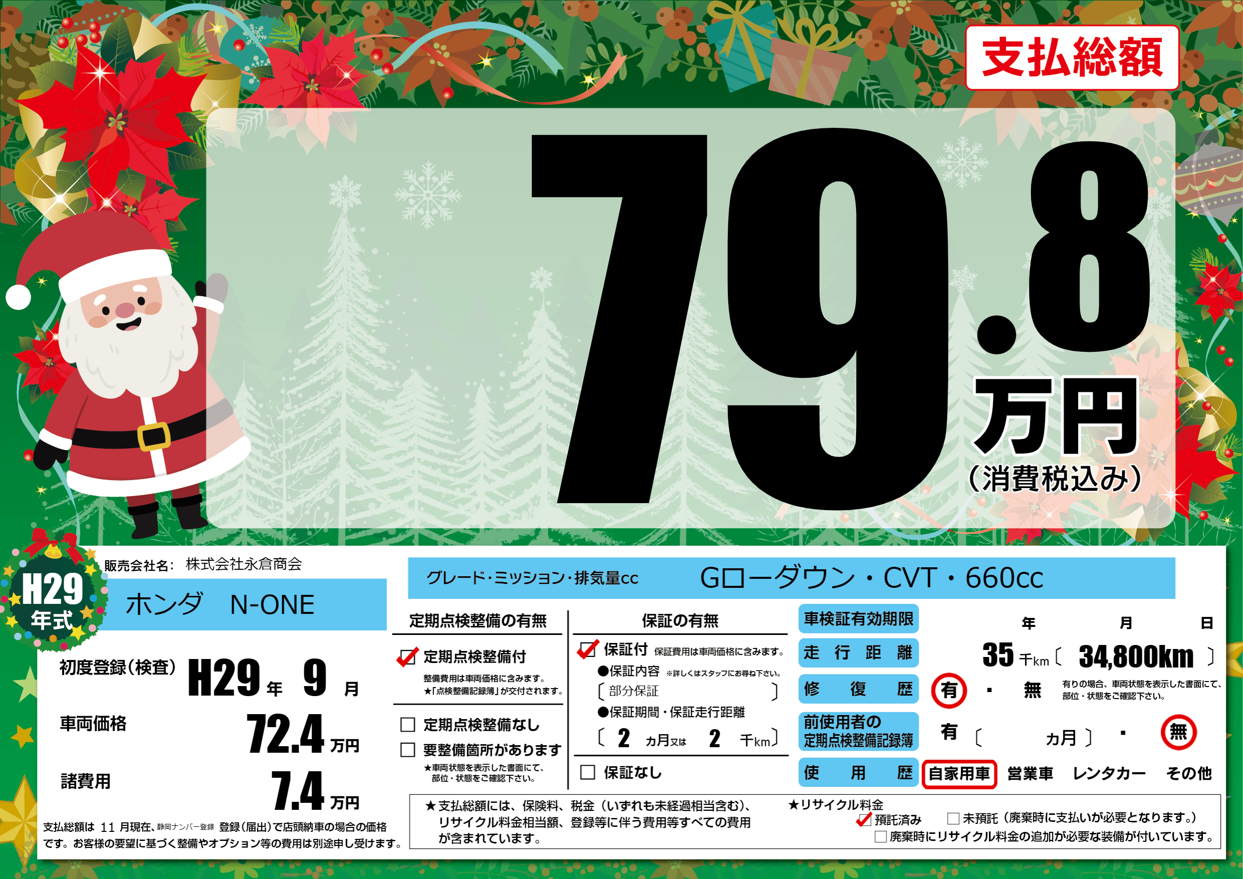 | 車名 | ホンダ N-ONE | グレード ミッション 排気量 |