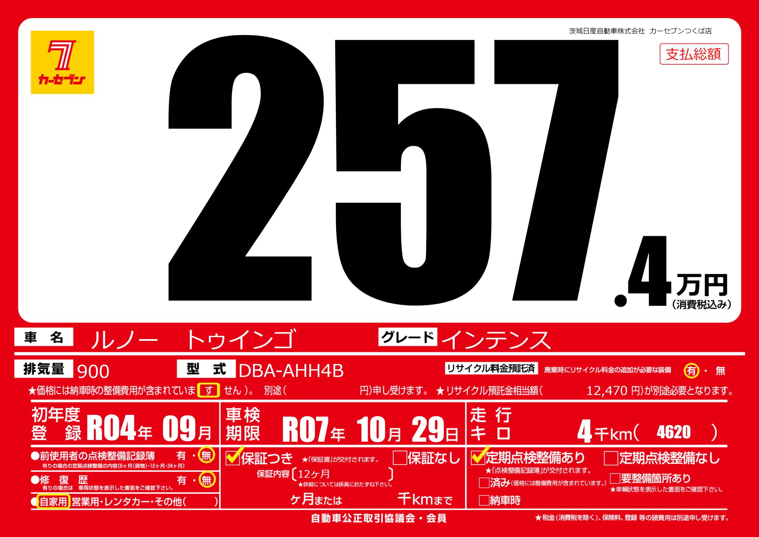 保証付き 保証内容(12ヶ月) ヶ月または千km |