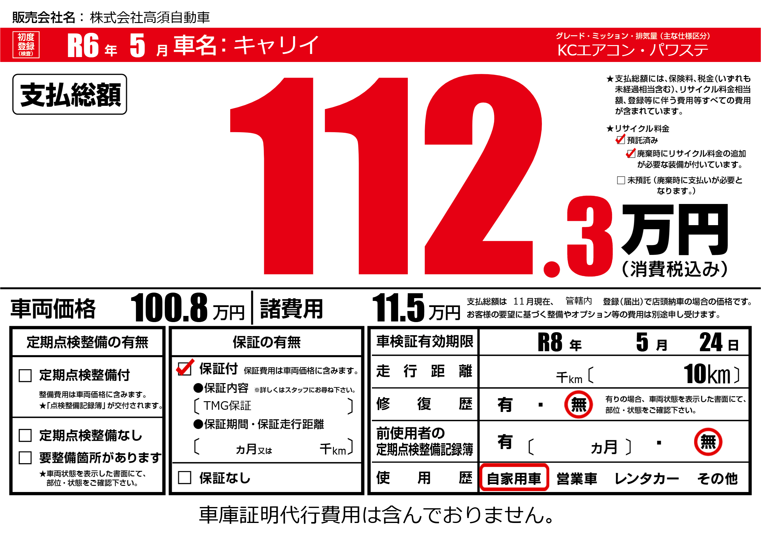 保証付き 保証内容(TMG保証) ---ヶ月または()千kmまで |