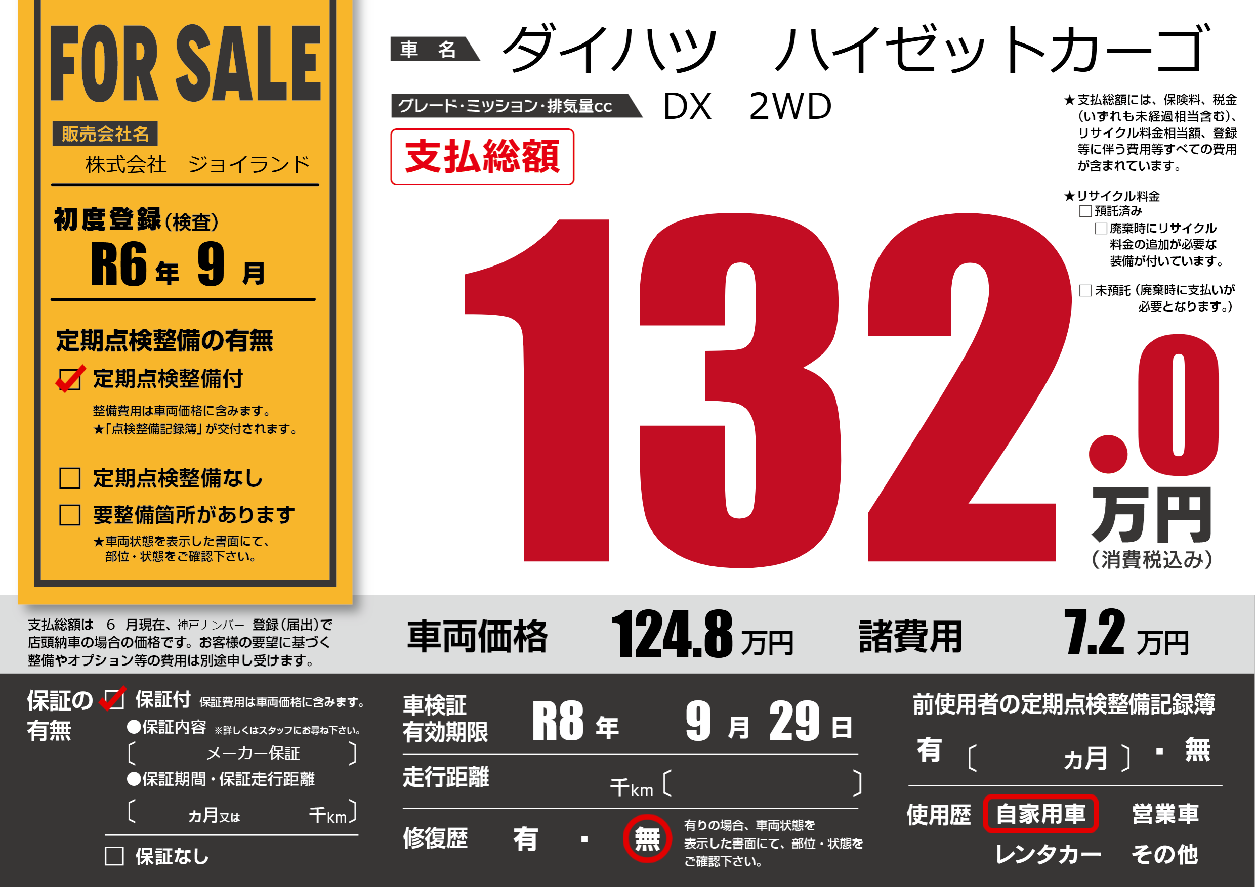 保証付き 保証内容( メーカー保証) ---ヶ月または()千kmまで |
