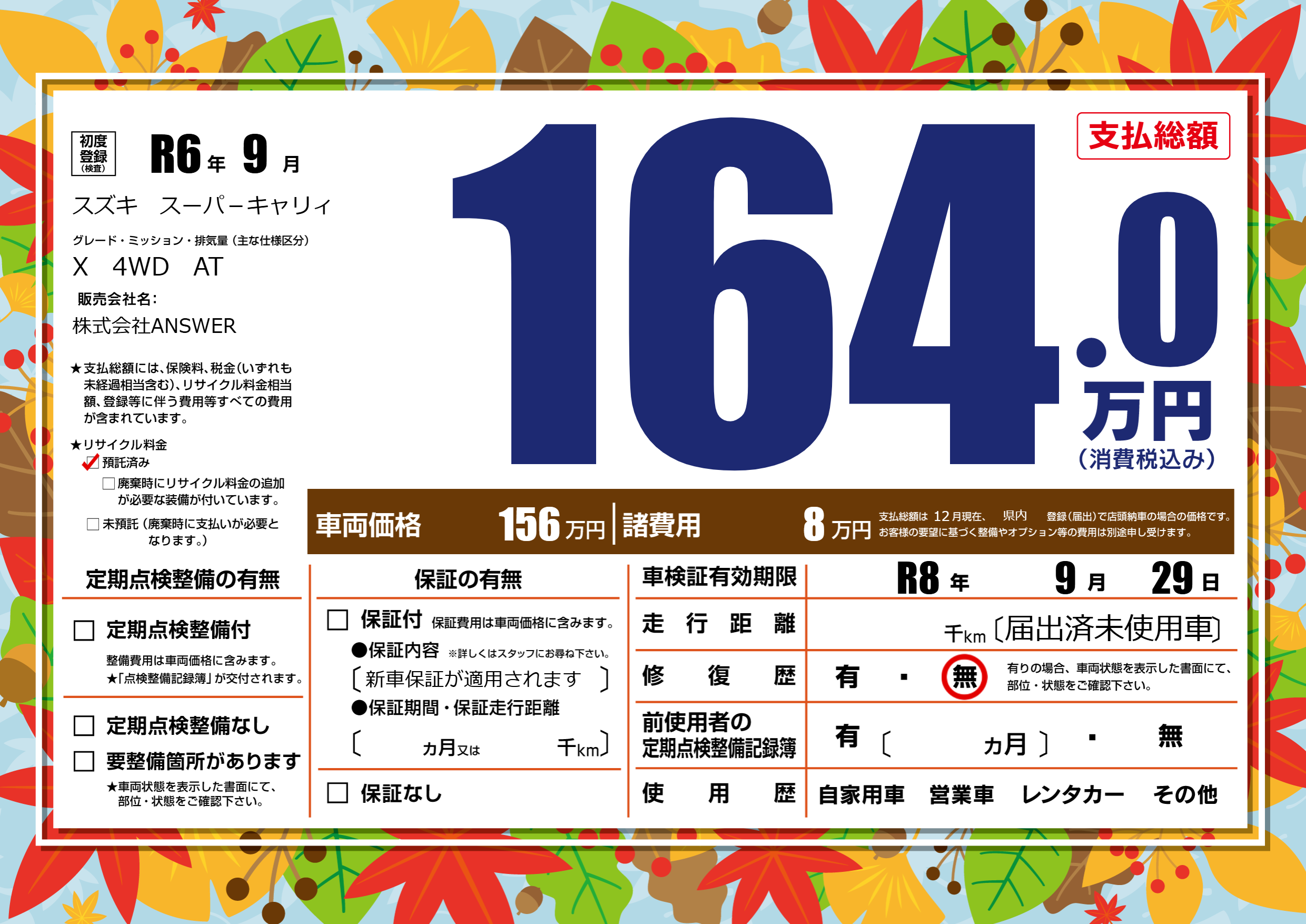 保証なし 保証内容(新車保証が適用されます) ---ヶ月または()千kmまで |