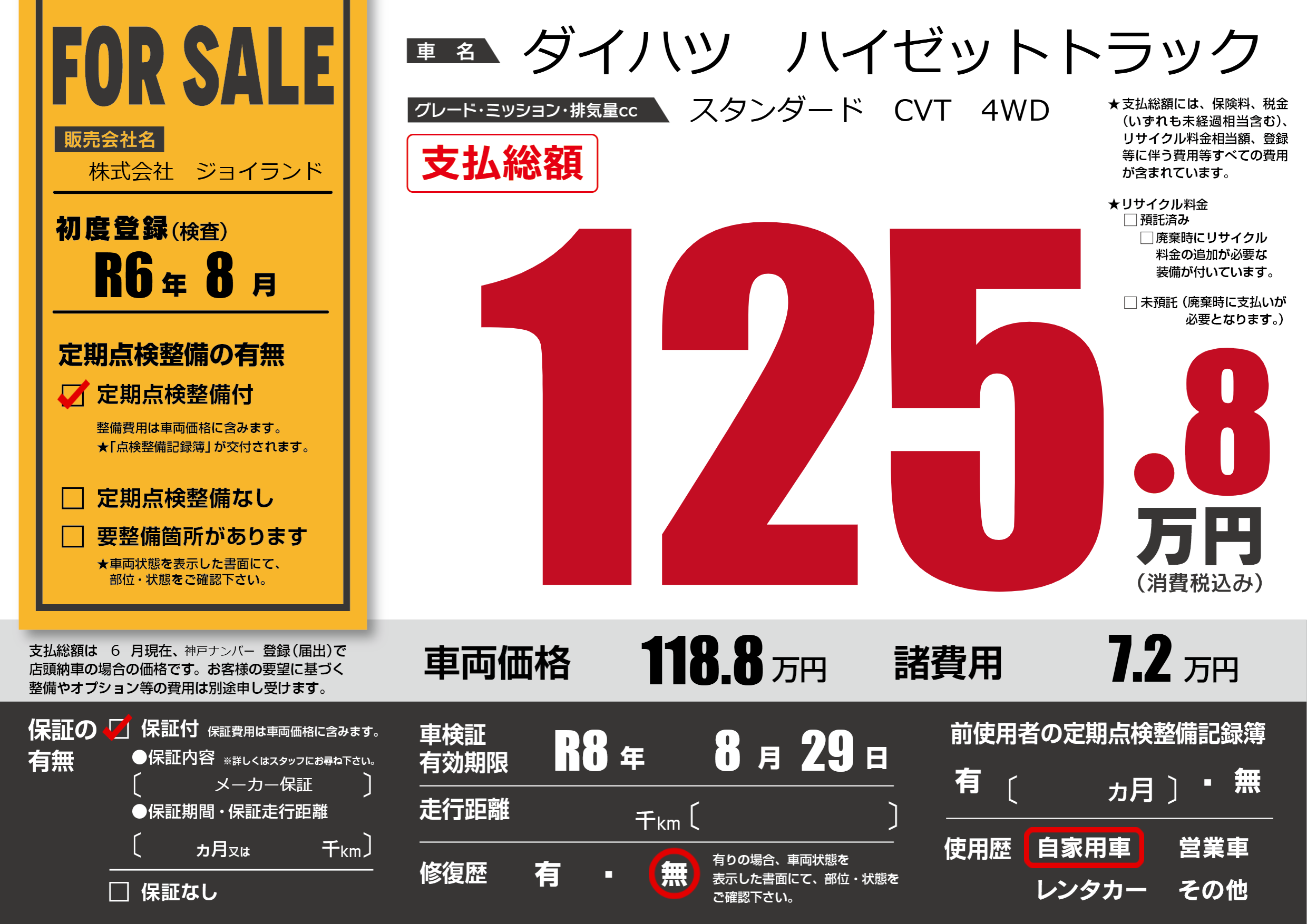 保証付き 保証内容( メーカー保証) ---ヶ月または()千kmまで |