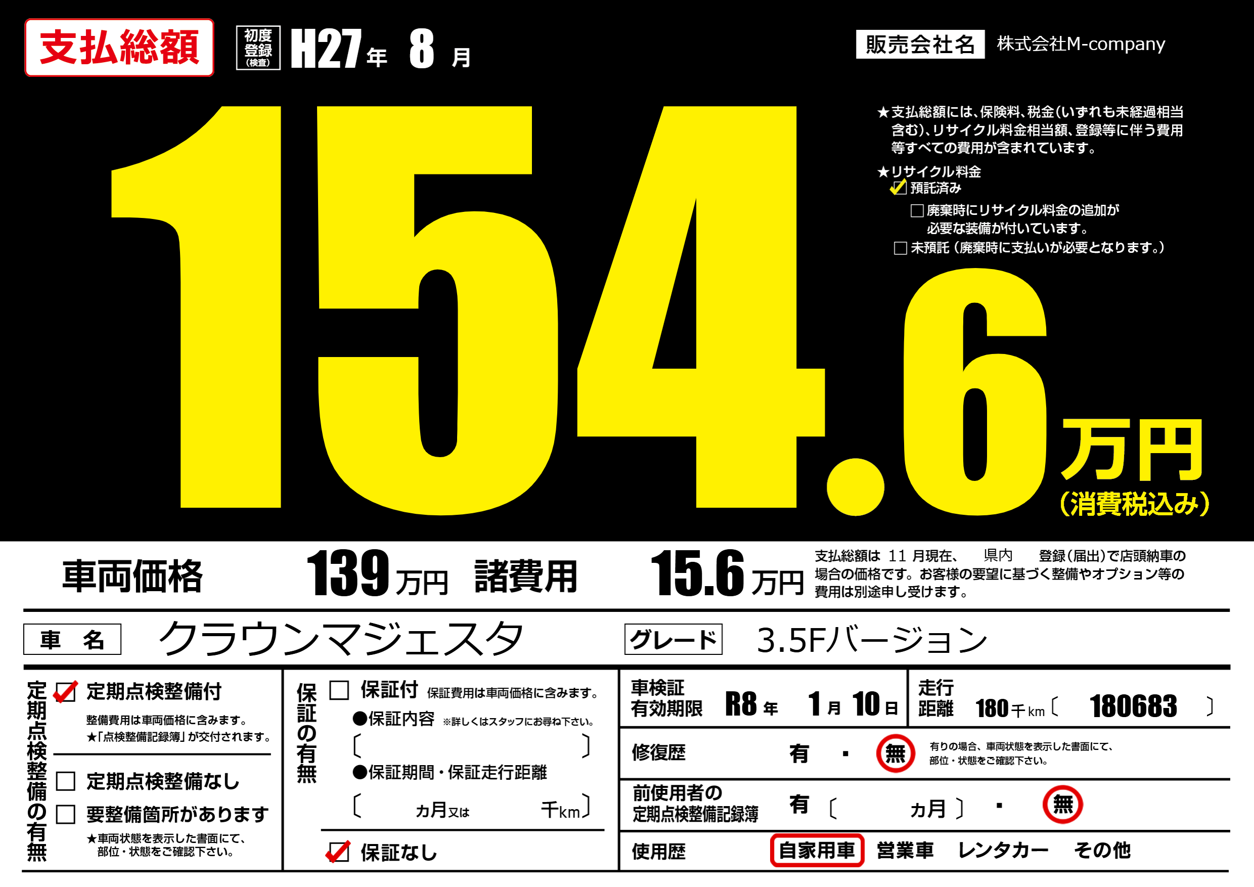 なし | 車検制限 | R8年1月10月 |