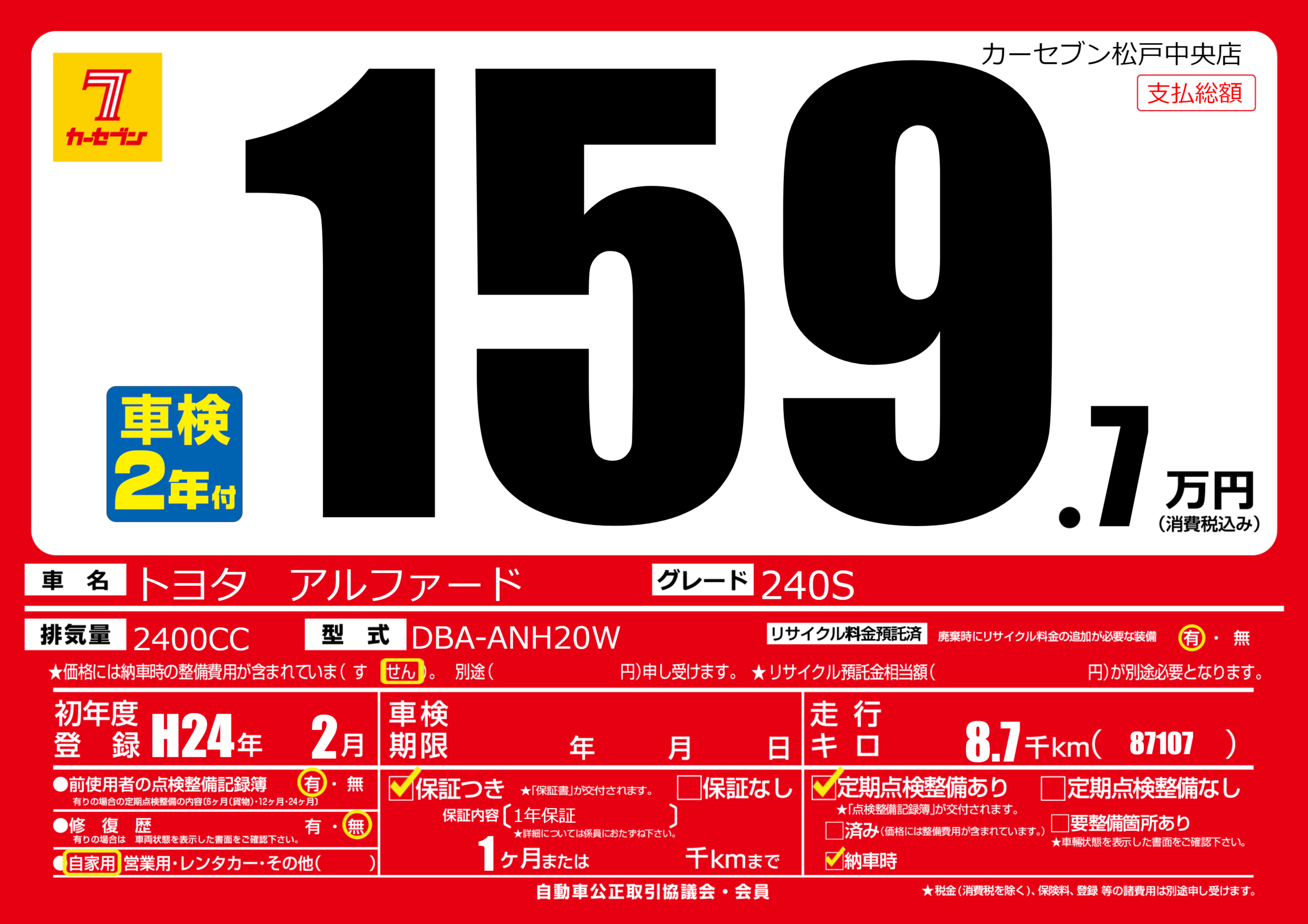| 初年度登録 | H24年2月 | ||