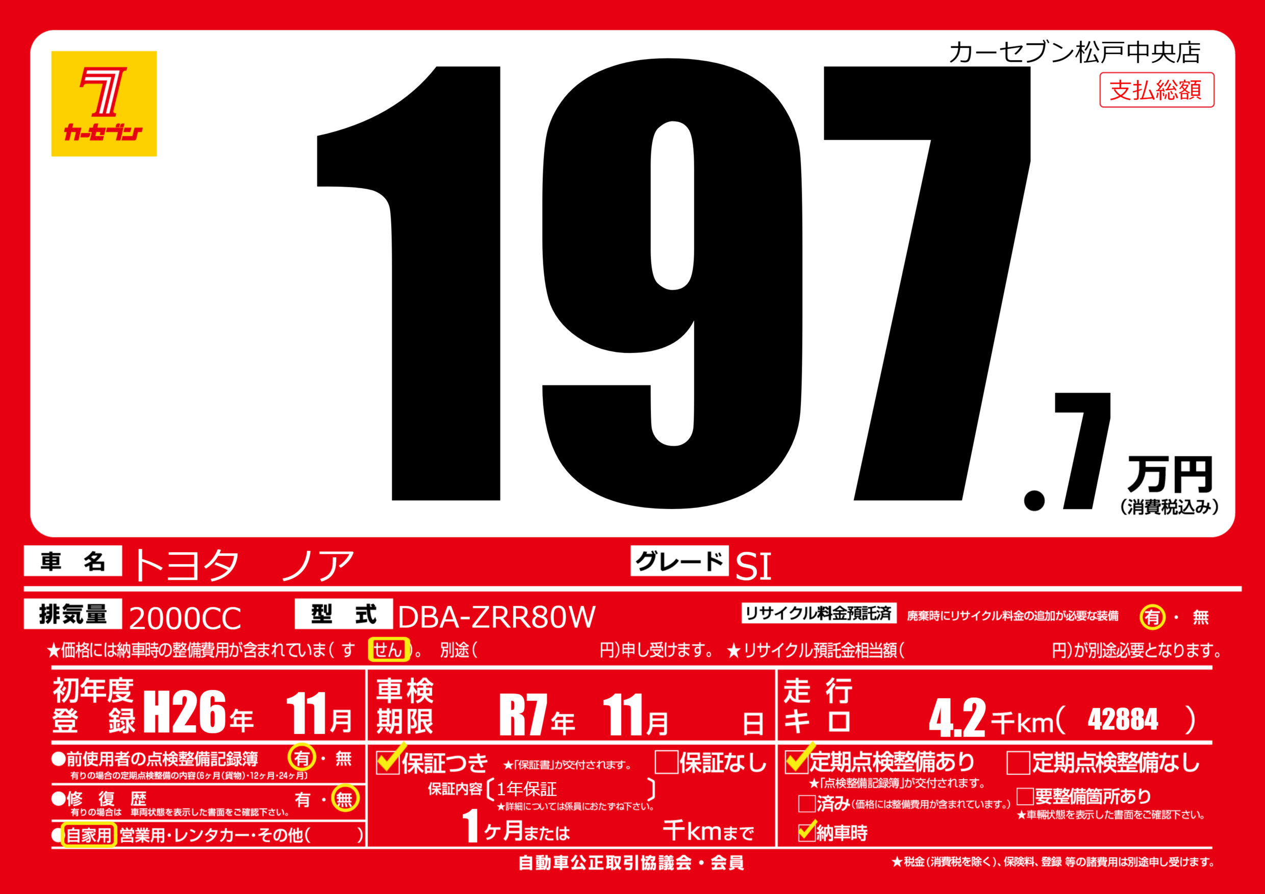| 車検制限 | R7年 11月 - 日 | ||