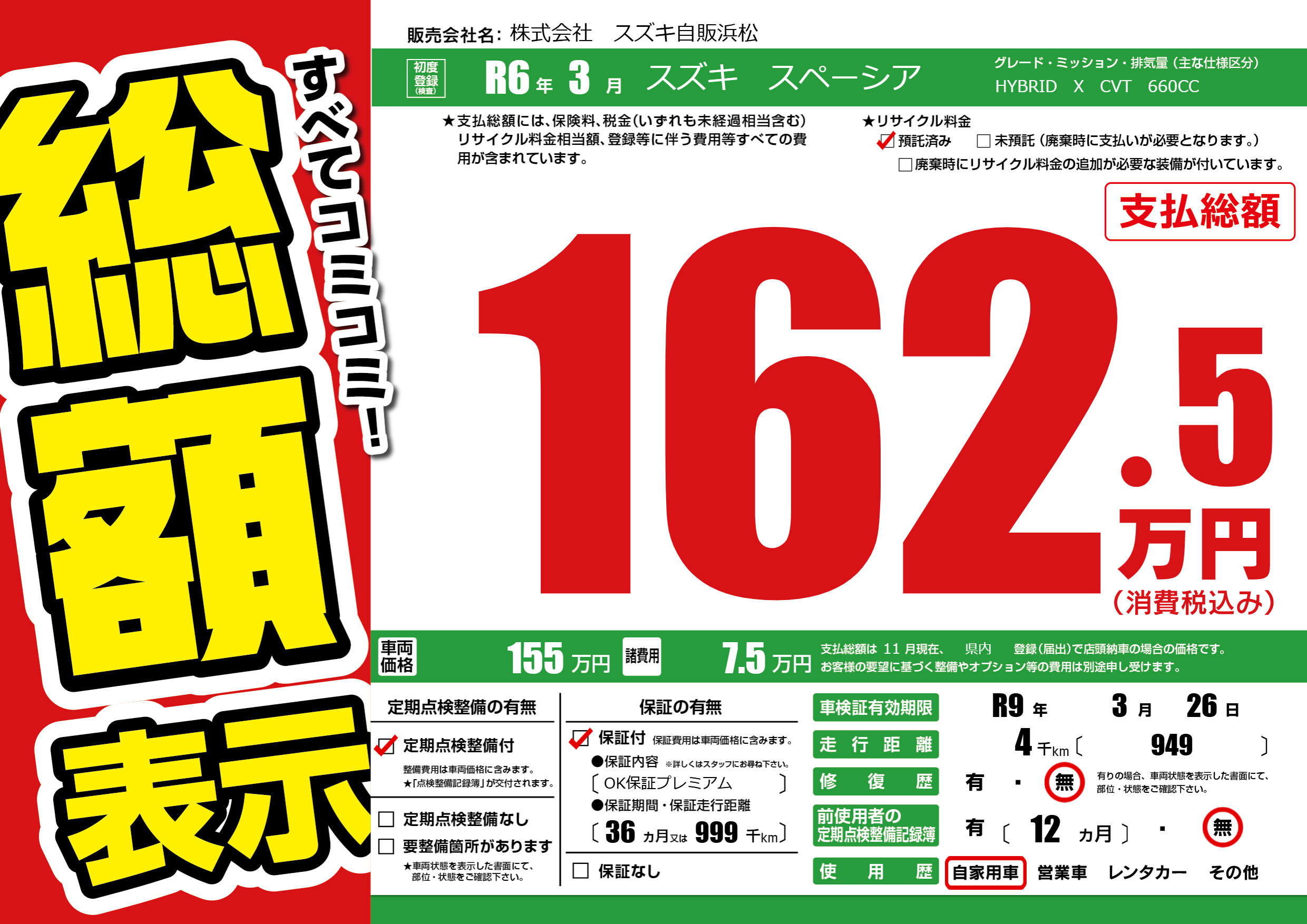 | 車名 | スズキ スペーシア | グレード ミッション 排気量 |