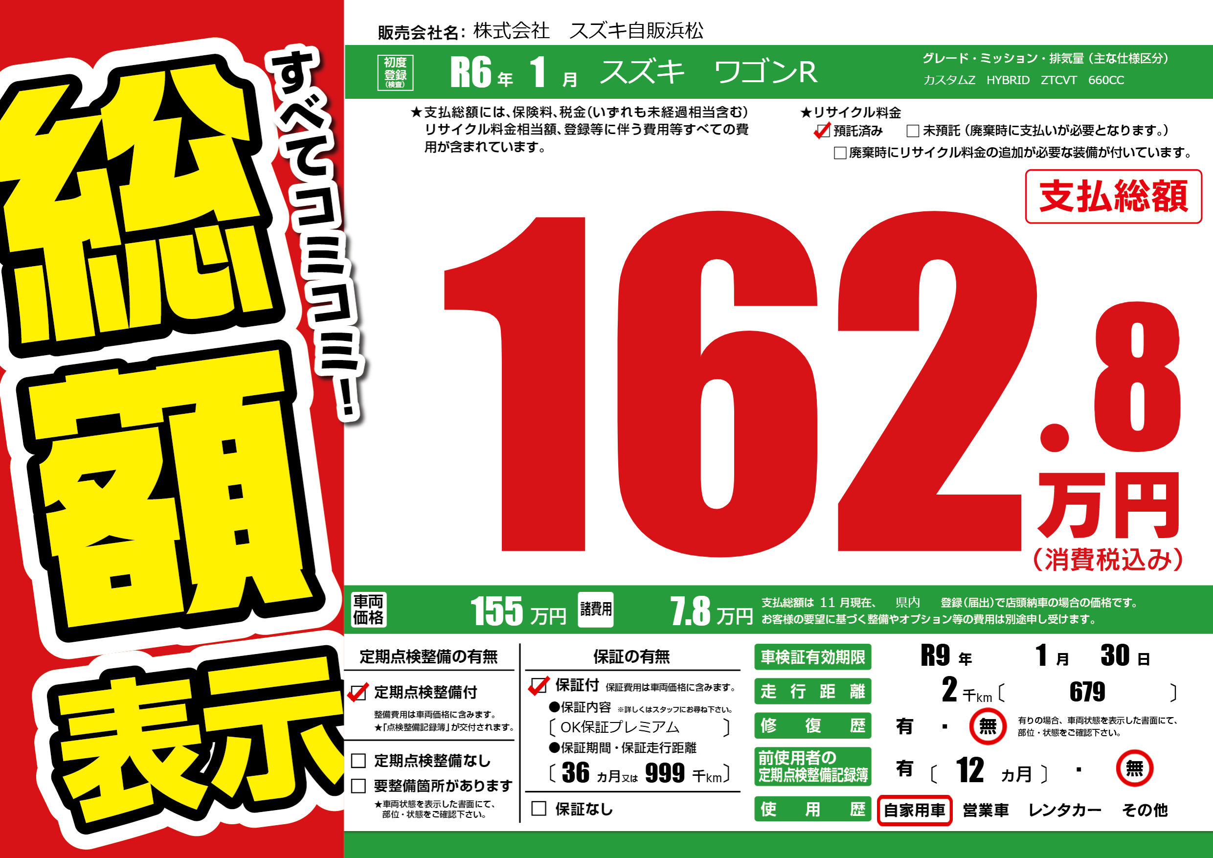 なし | 車検制限 | R9年1月30月 |