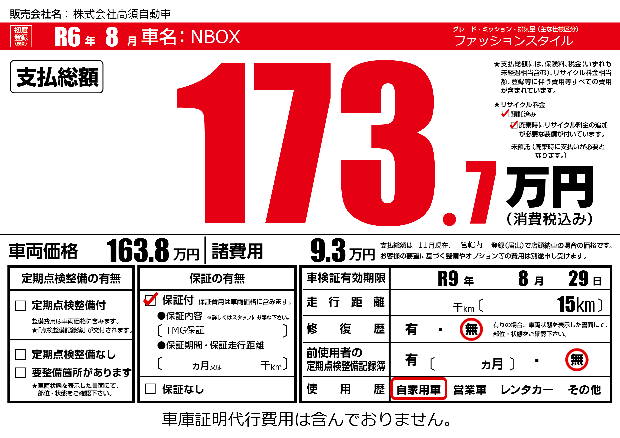 保証付き 保証内容(TMG保証) ---ヶ月または()千kmまで |