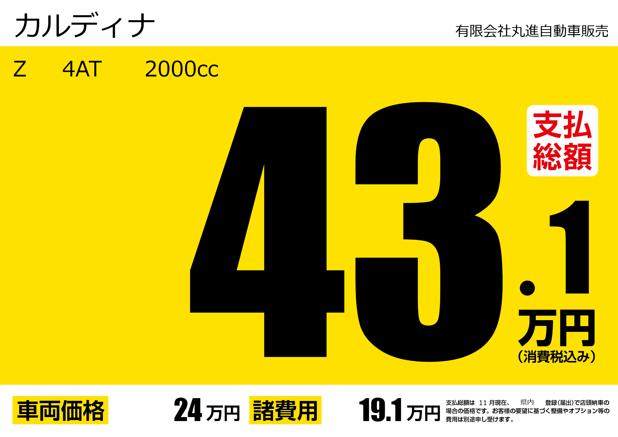 | 車名 | カルディナ | グレード ミッション 排気量 |