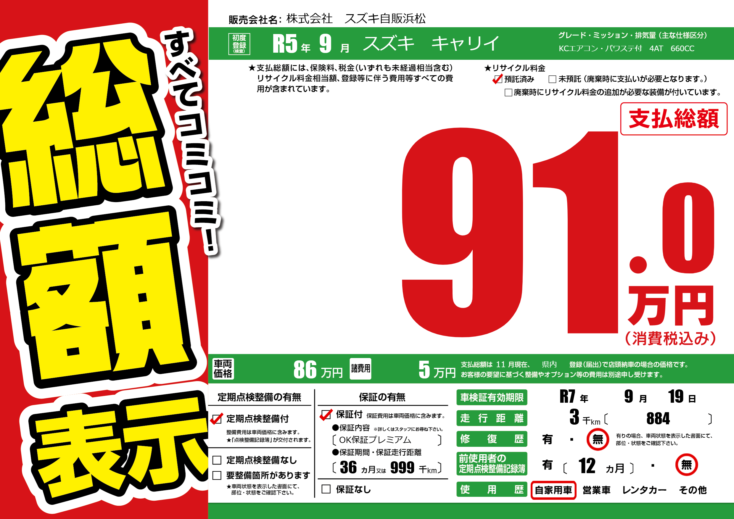 なし | 車検制限 | R7年9月19月 |