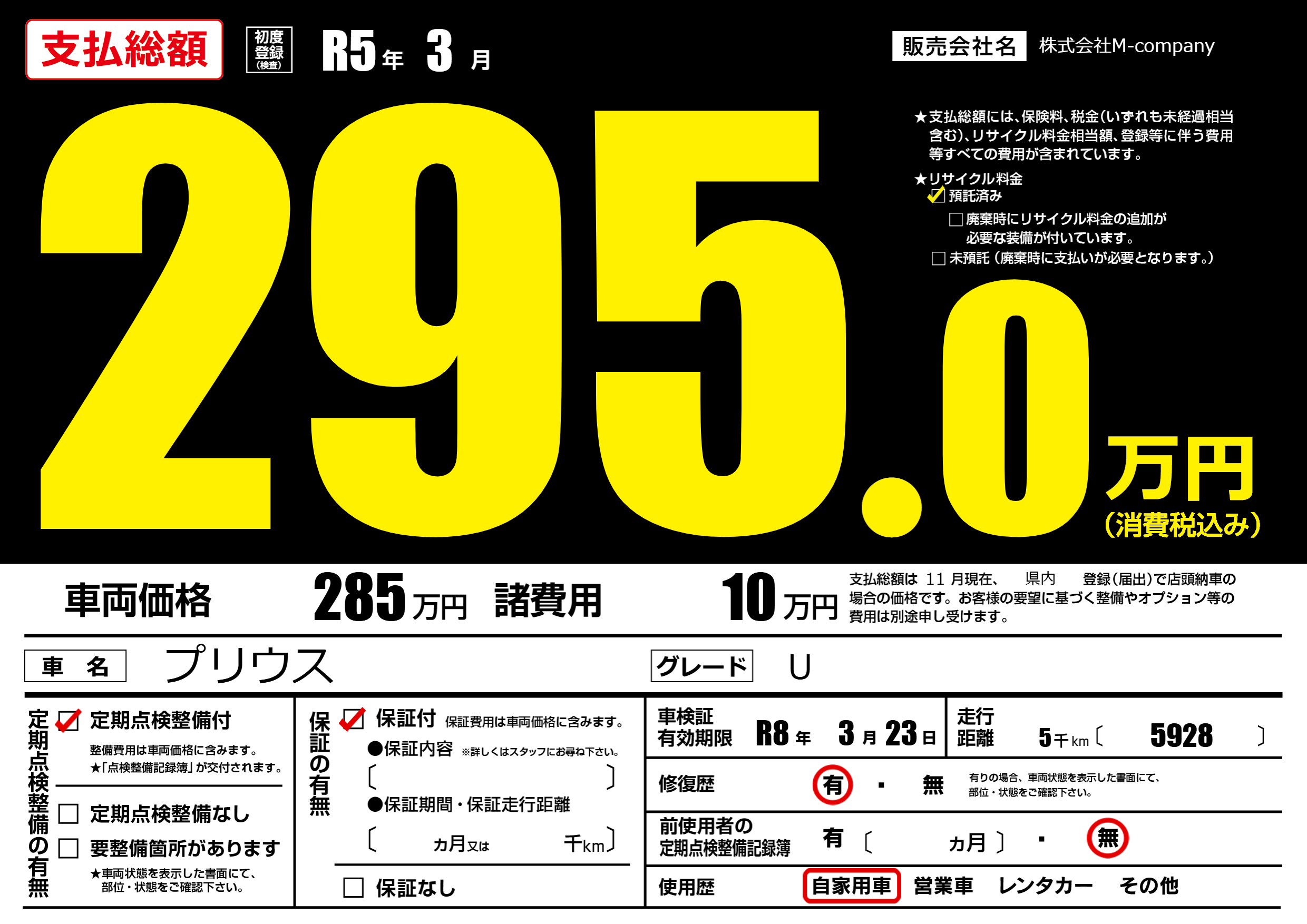| 車名 | プリウス | グレード ミッション 排気量 |