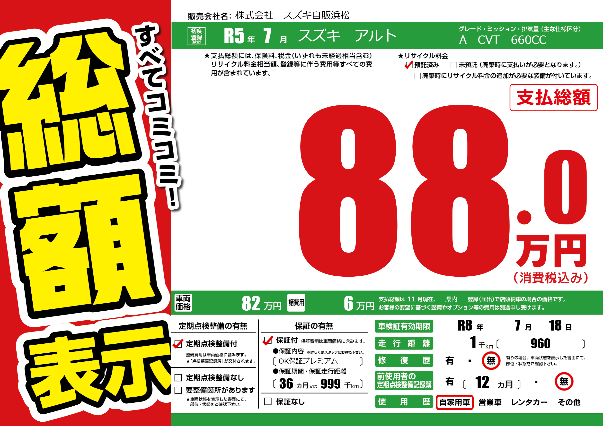 なし | 車検制限 | R8年7月18月 |