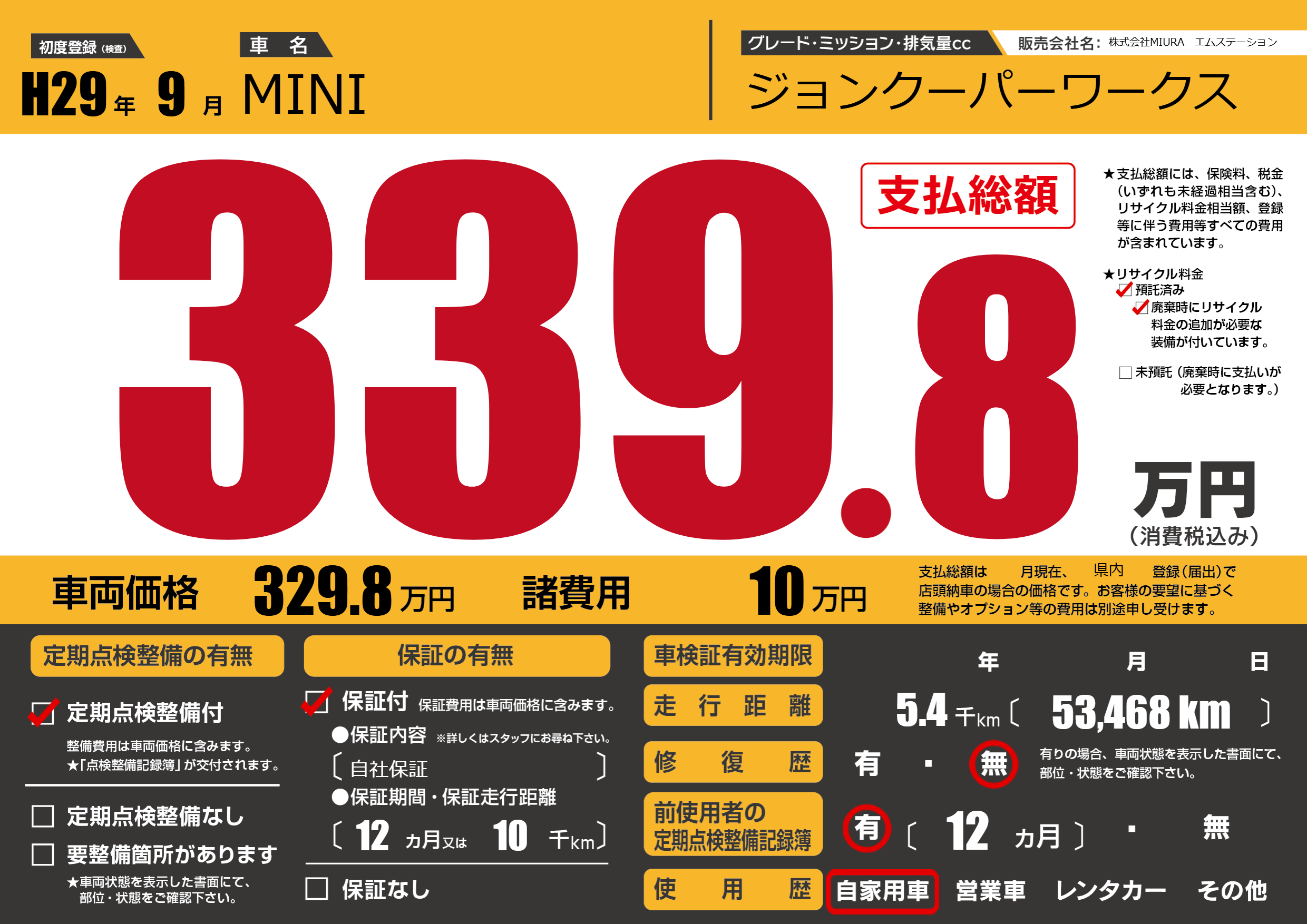 | 走行キロ | 0.5万km | 初年度登録 | H29年9月 |