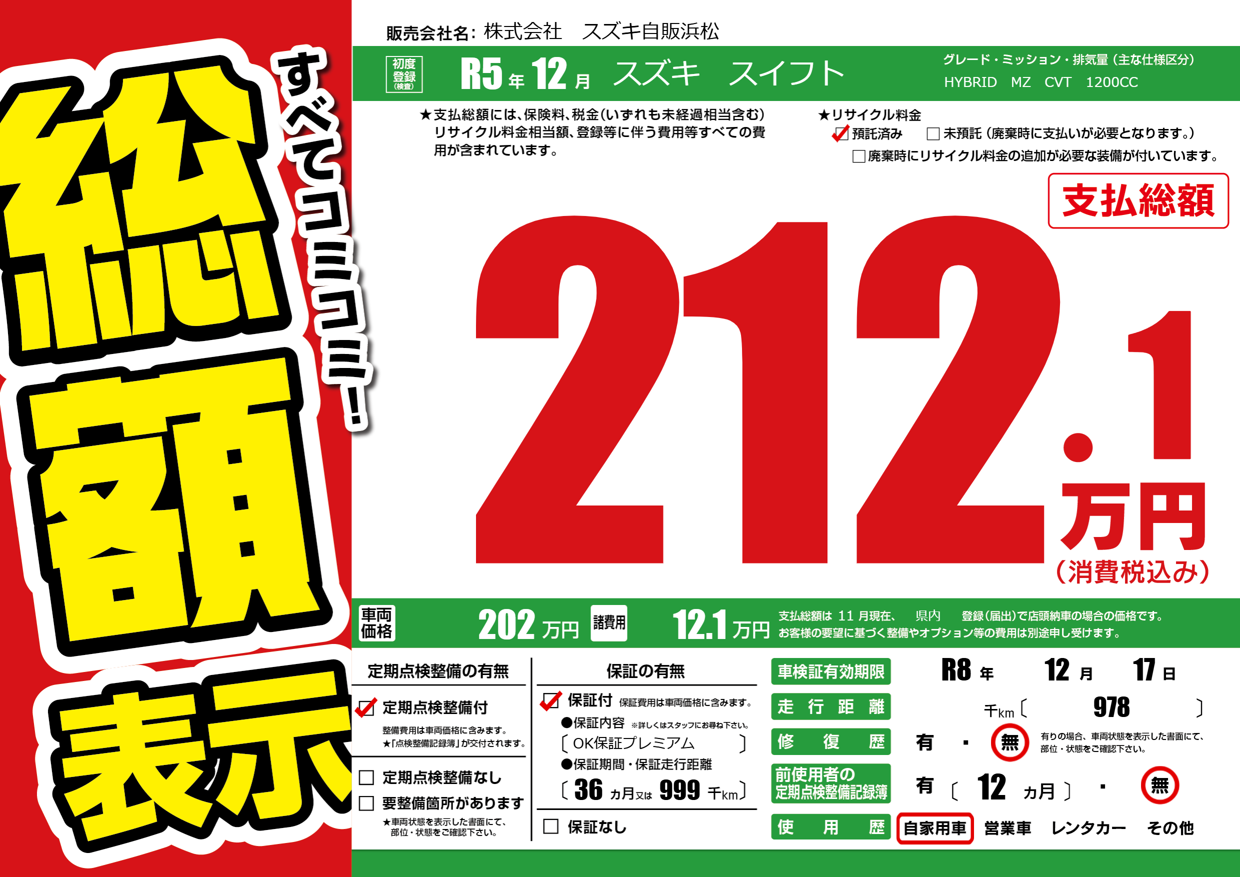 | 車名 | スズキ スイフト | グレード ミッション 排気量 |