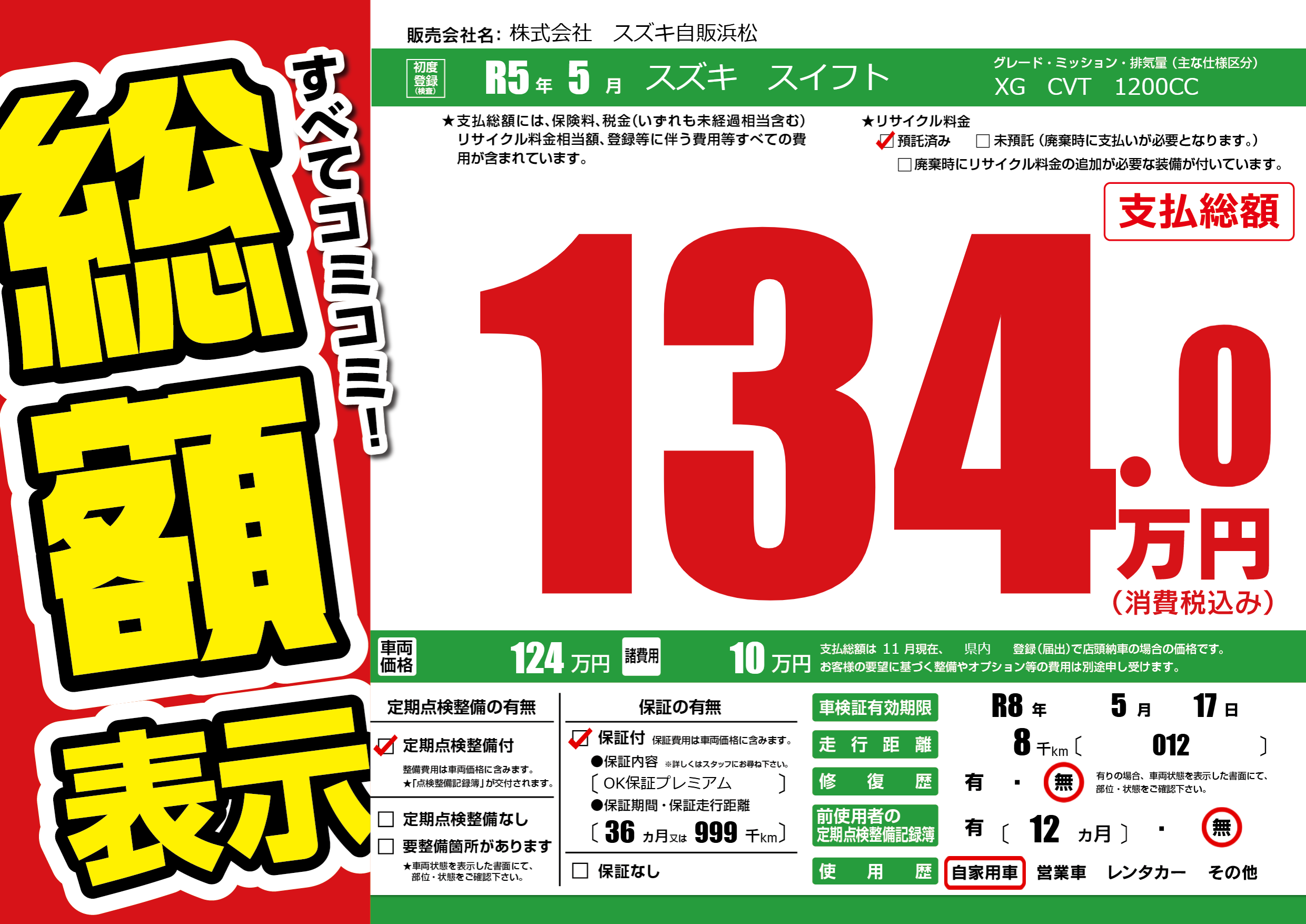 なし | 車検制限 | R8年5月17月 |