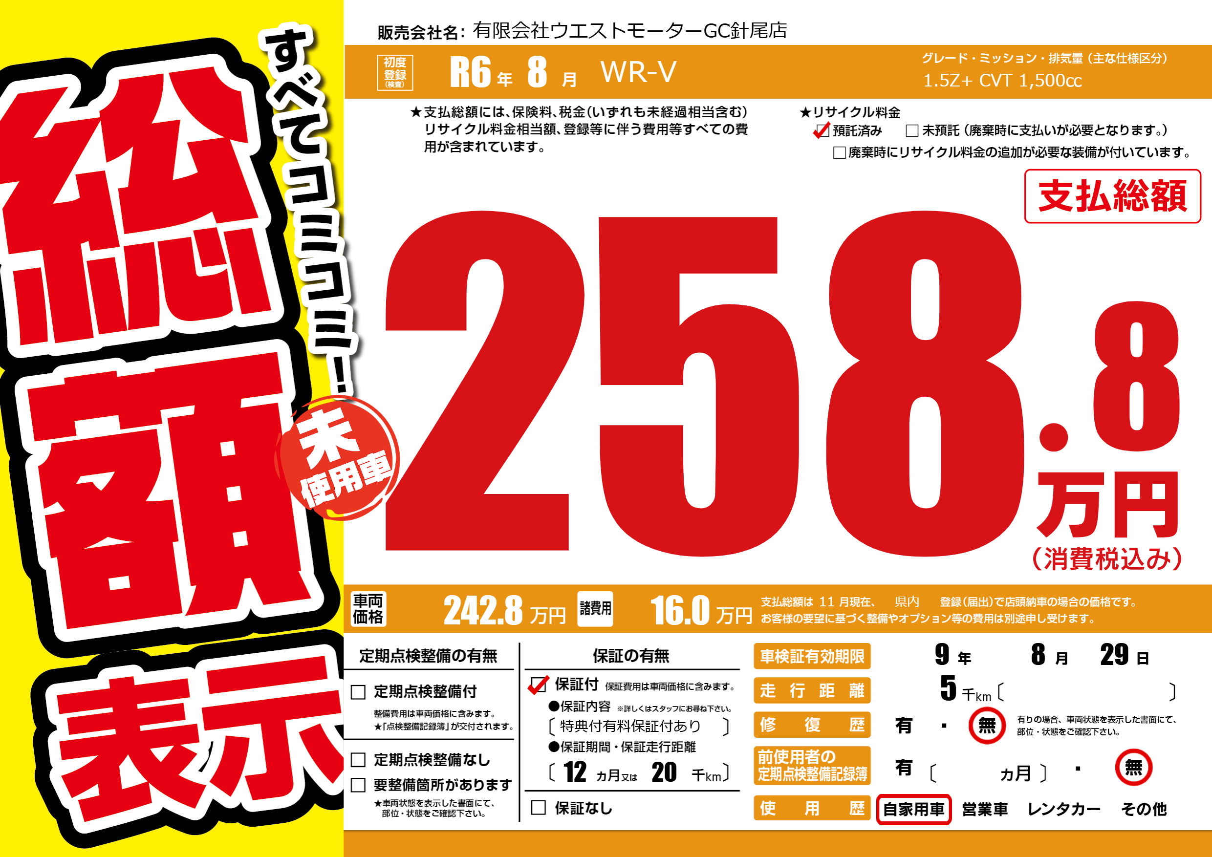 | 車検制限 | 9年 8月 29日 | ||