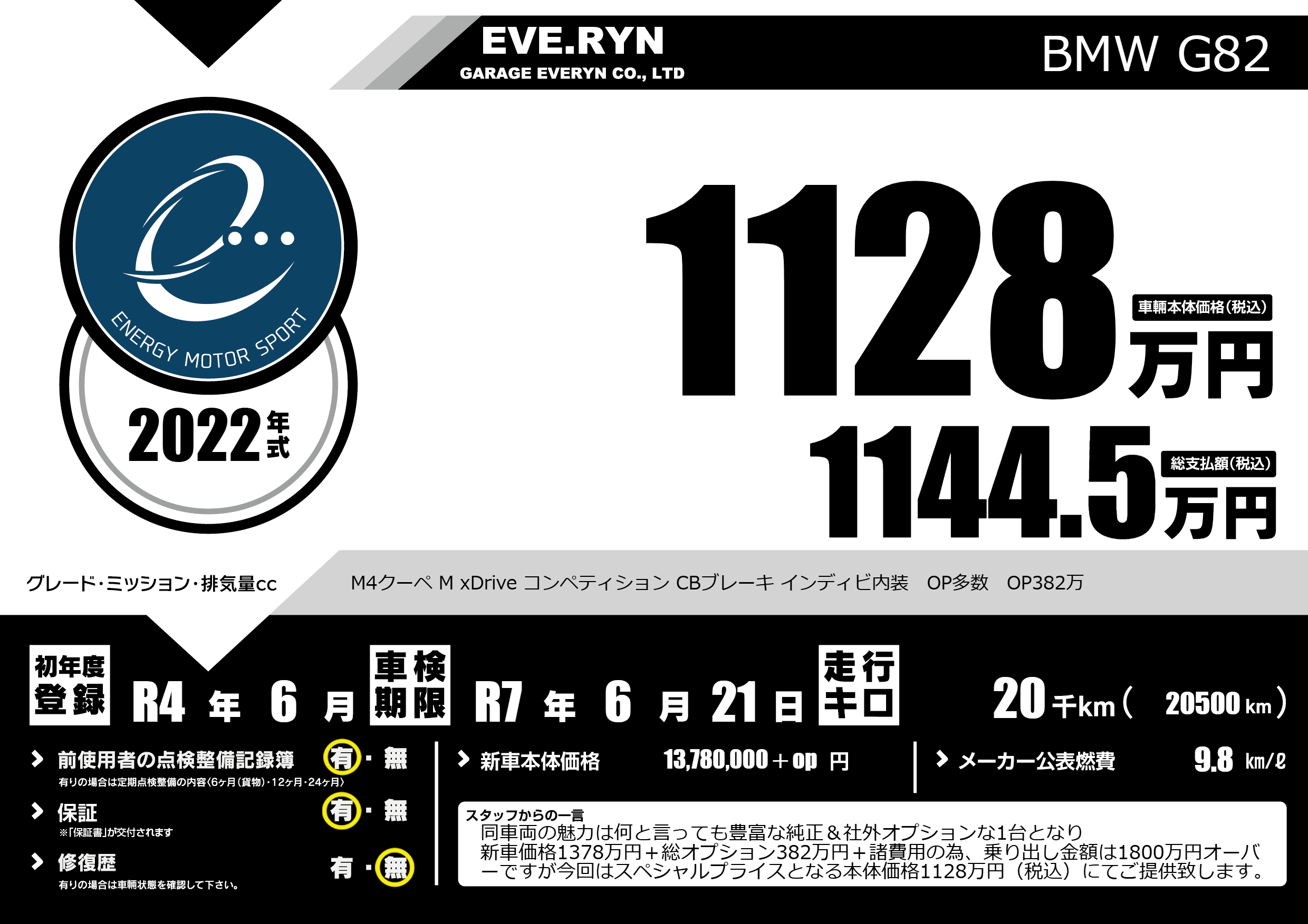 | 車名 | BMW G82 | グレード ミッション 排気量 |
