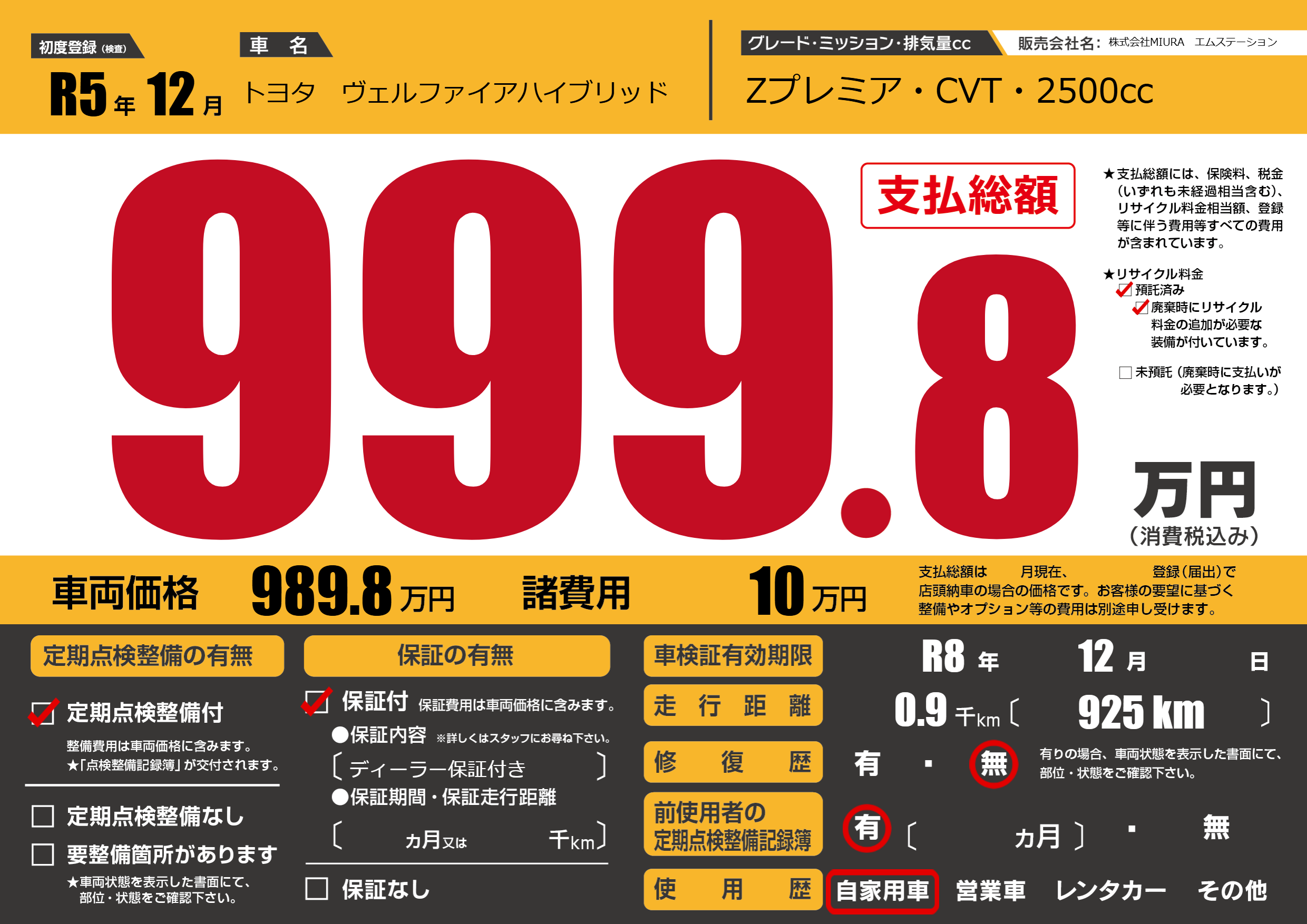 | 走行キロ | - | 初年度登録 | R5年12月 |