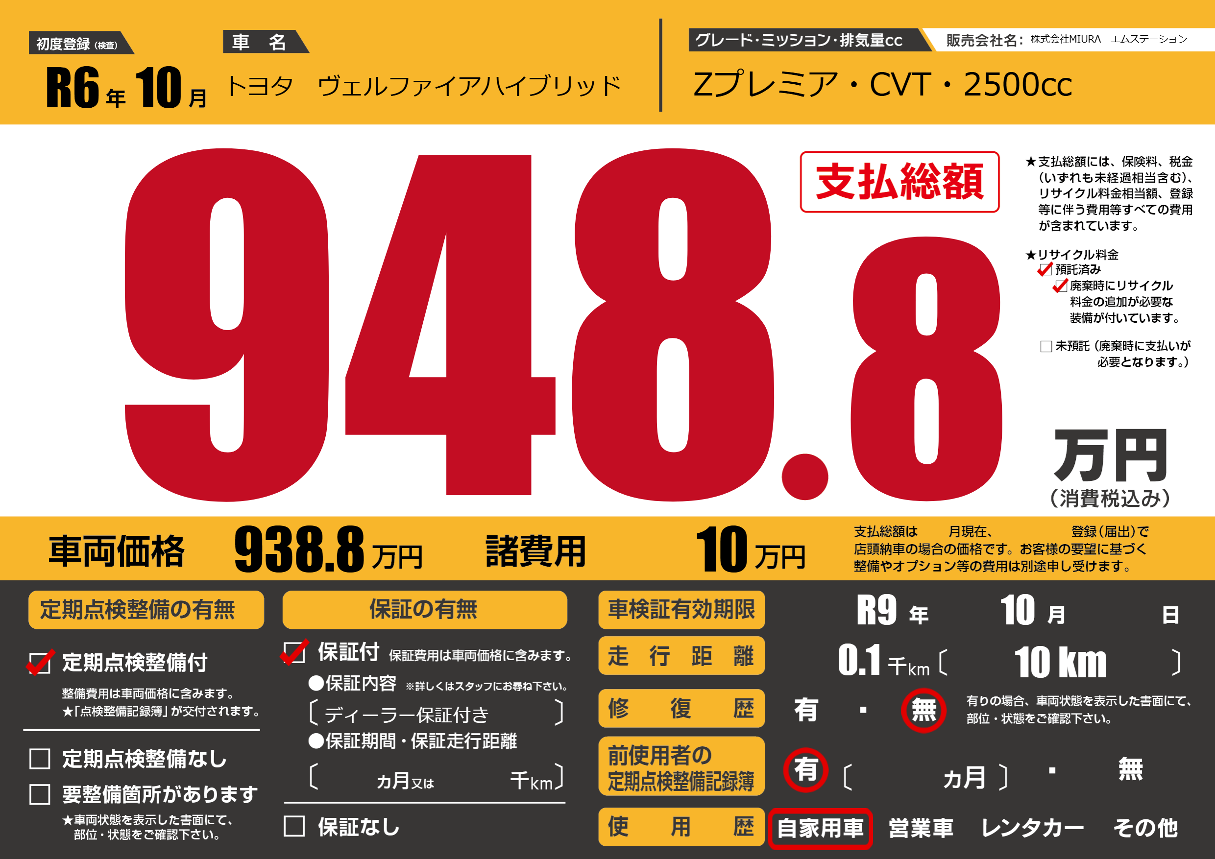 | 車検制限 | R9年 10月 - 日 | ||