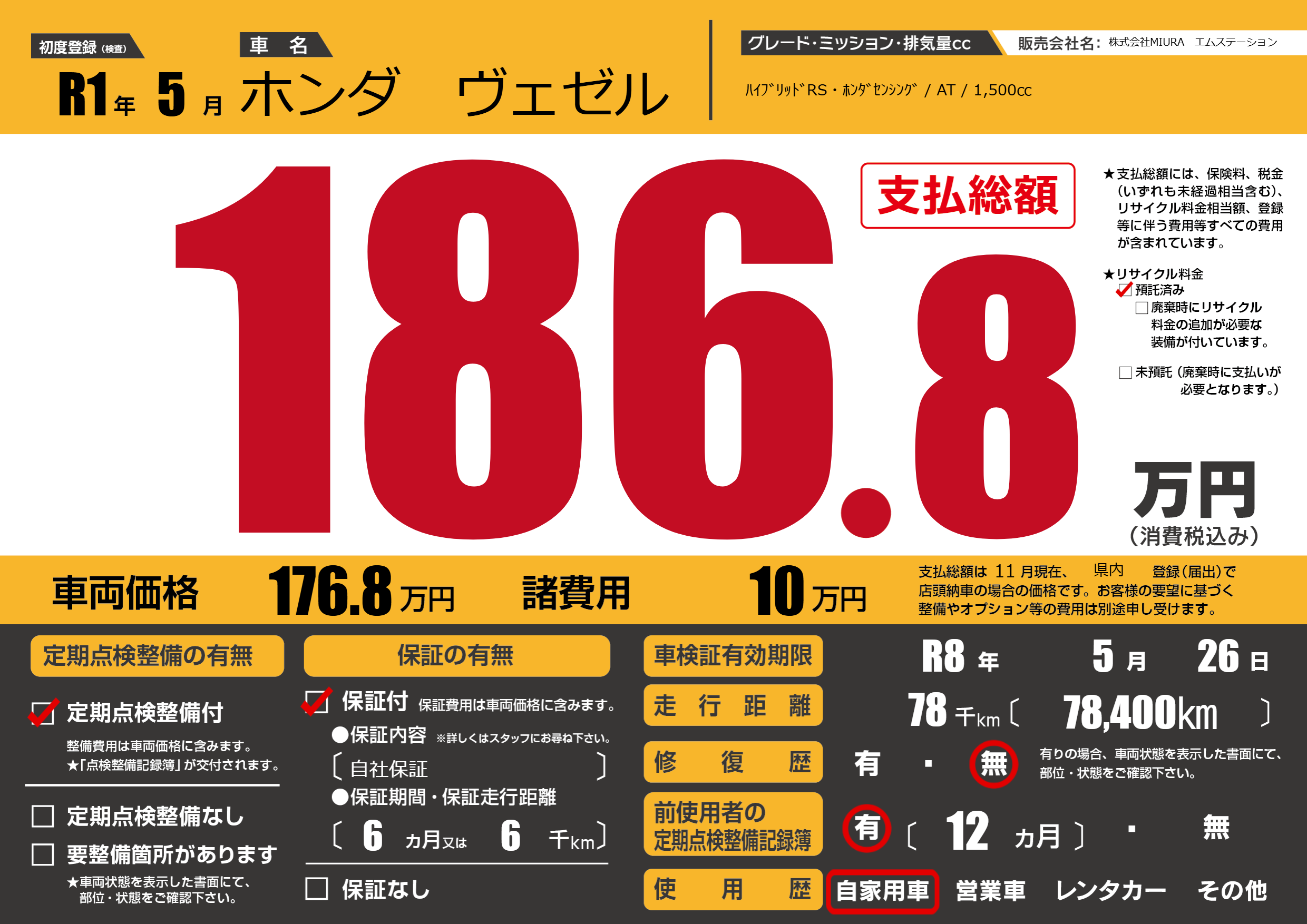 なし | 車検制限 | R8年5月26月 |