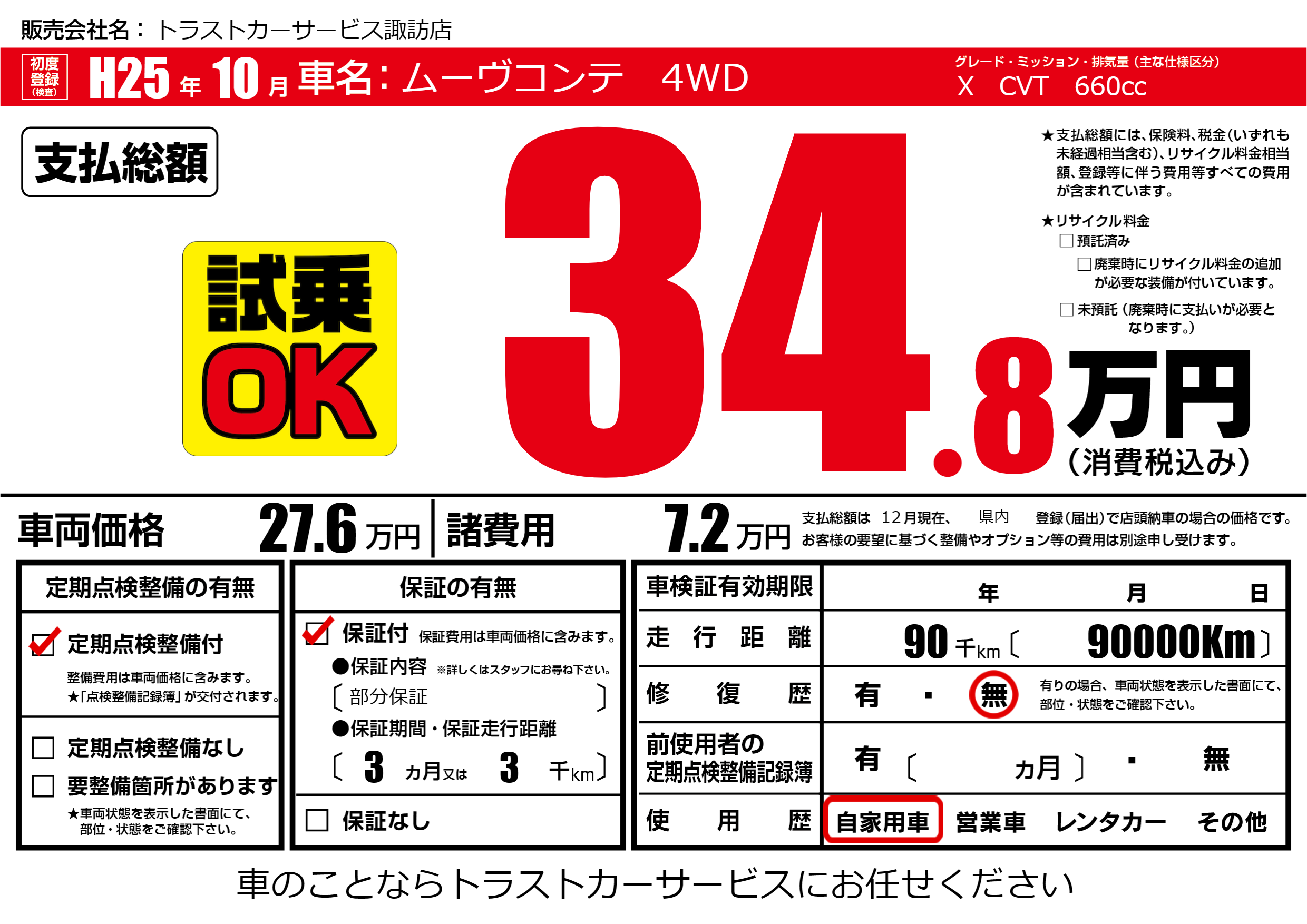 | 車名 | ムーヴコンテ 4WD | グレード ミッション 排気量 |