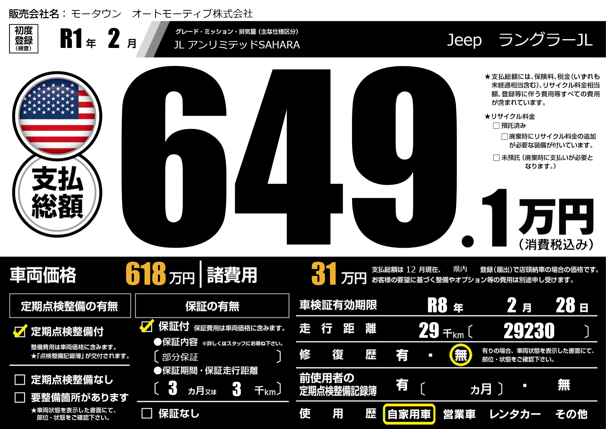 | 車検制限 | R8年 2月 28日 | ||
