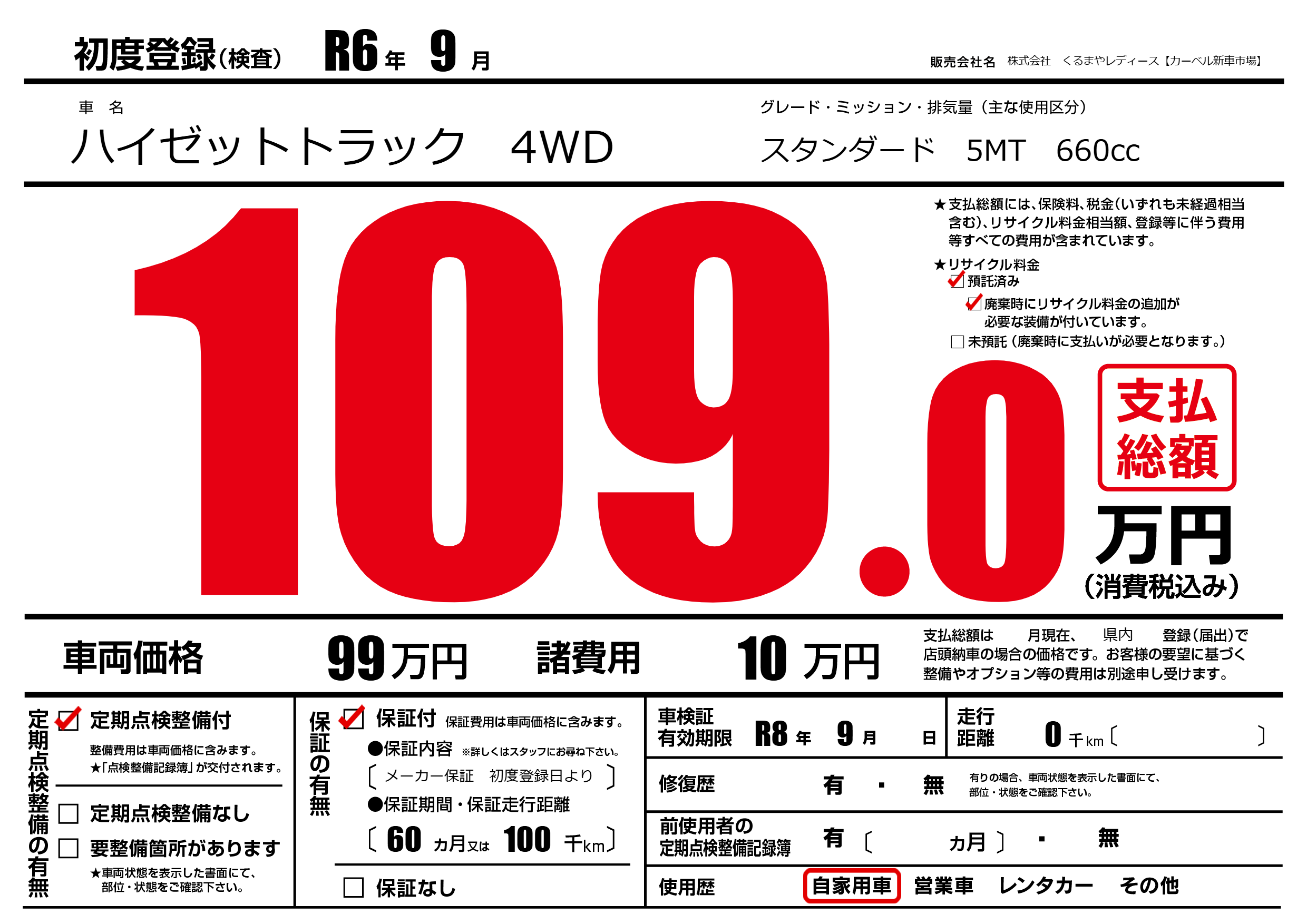 なし | 車検制限 | R8年9月---月 |
