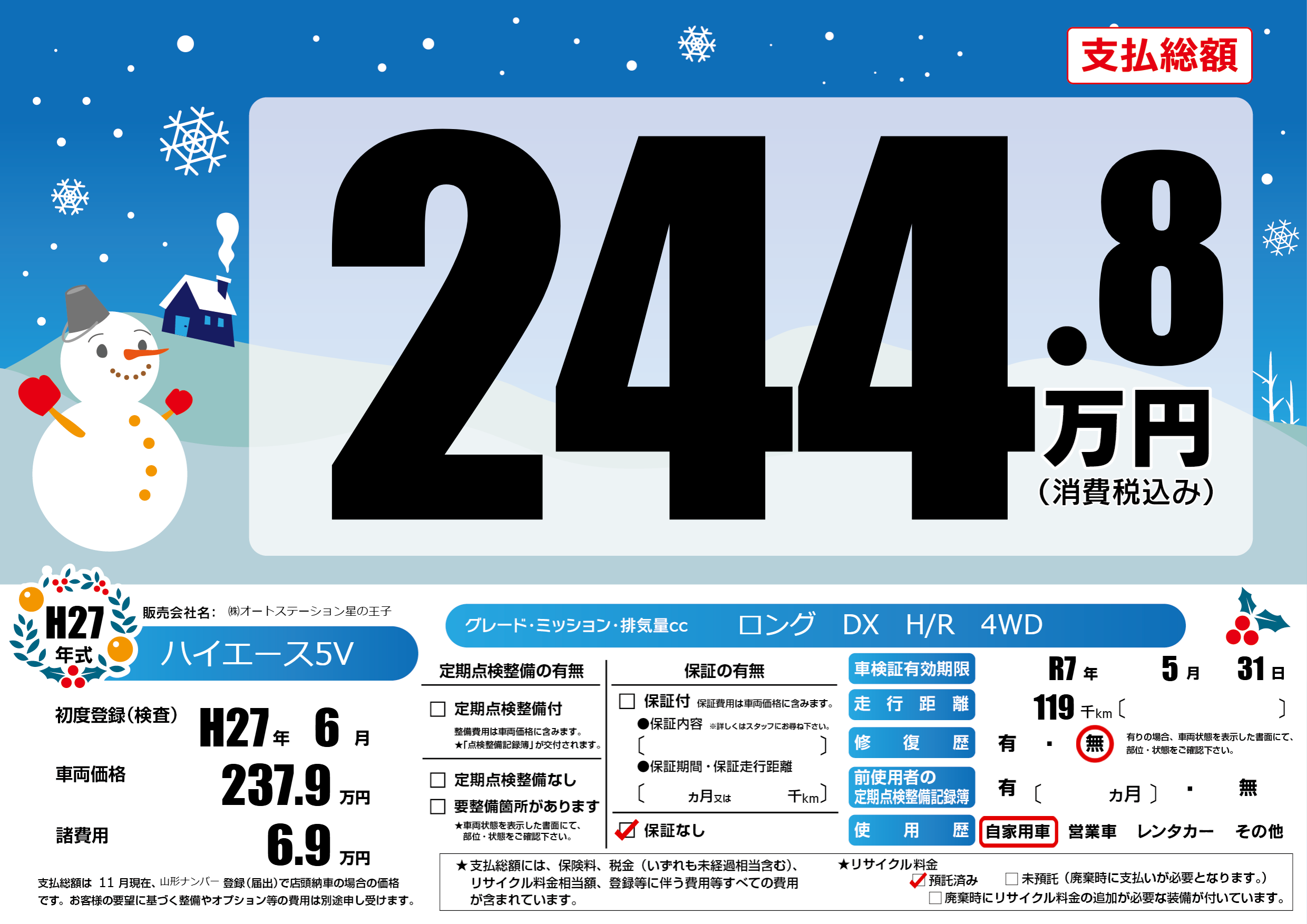 | 車名 | ハイエース5V | グレード ミッション 排気量 |