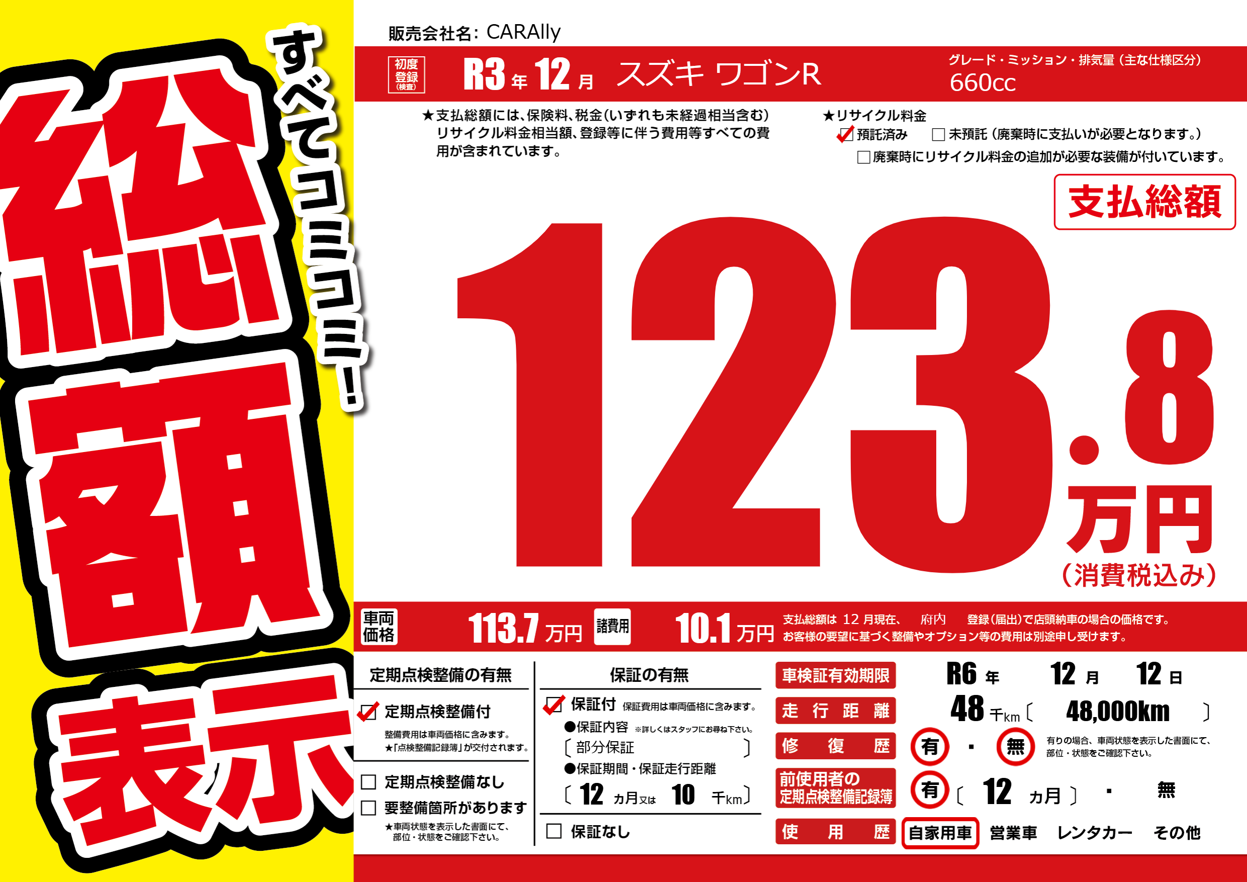 保証付き 保証内容(部分保証) 12ヶ月または(10)千kmまで |