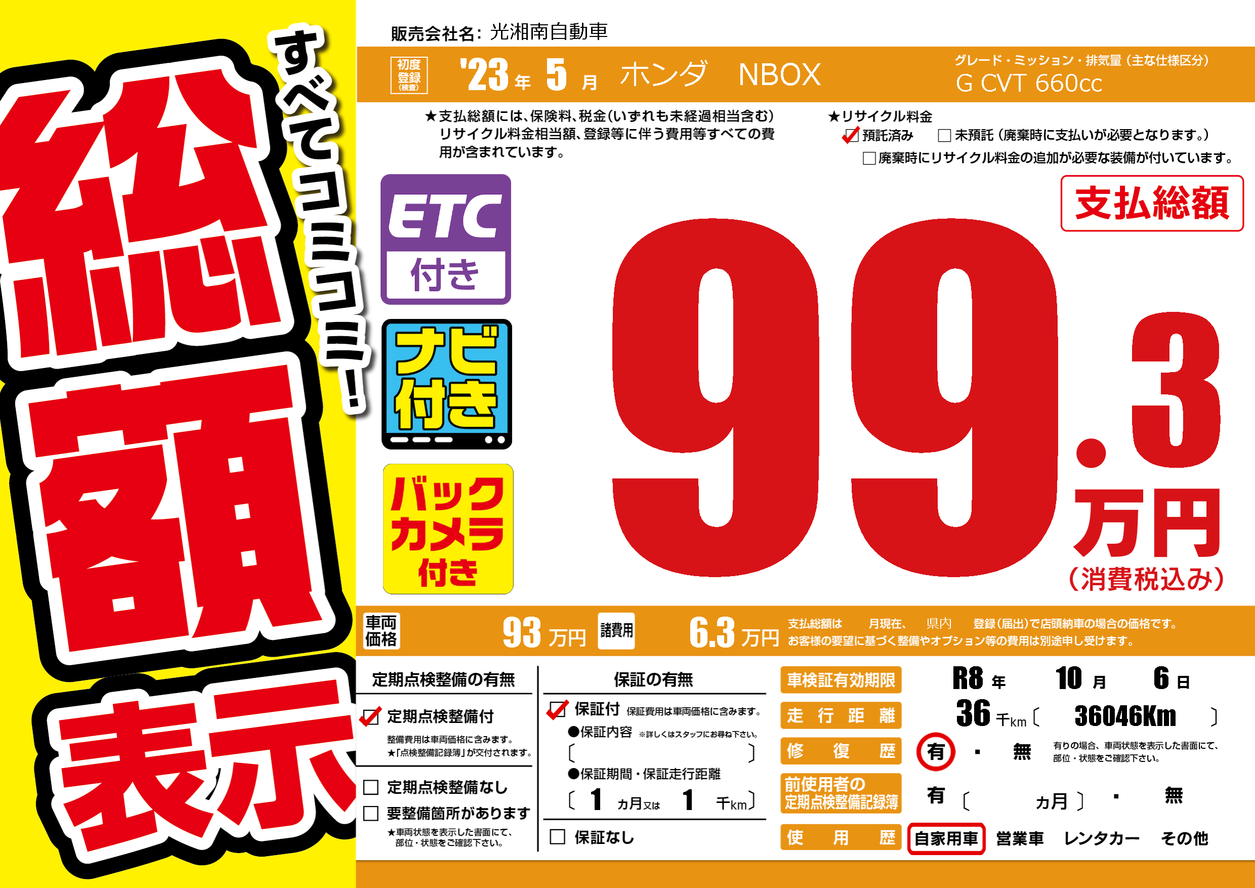 | 走行キロ | 3.6万km | 初年度登録 | '23年5月 |