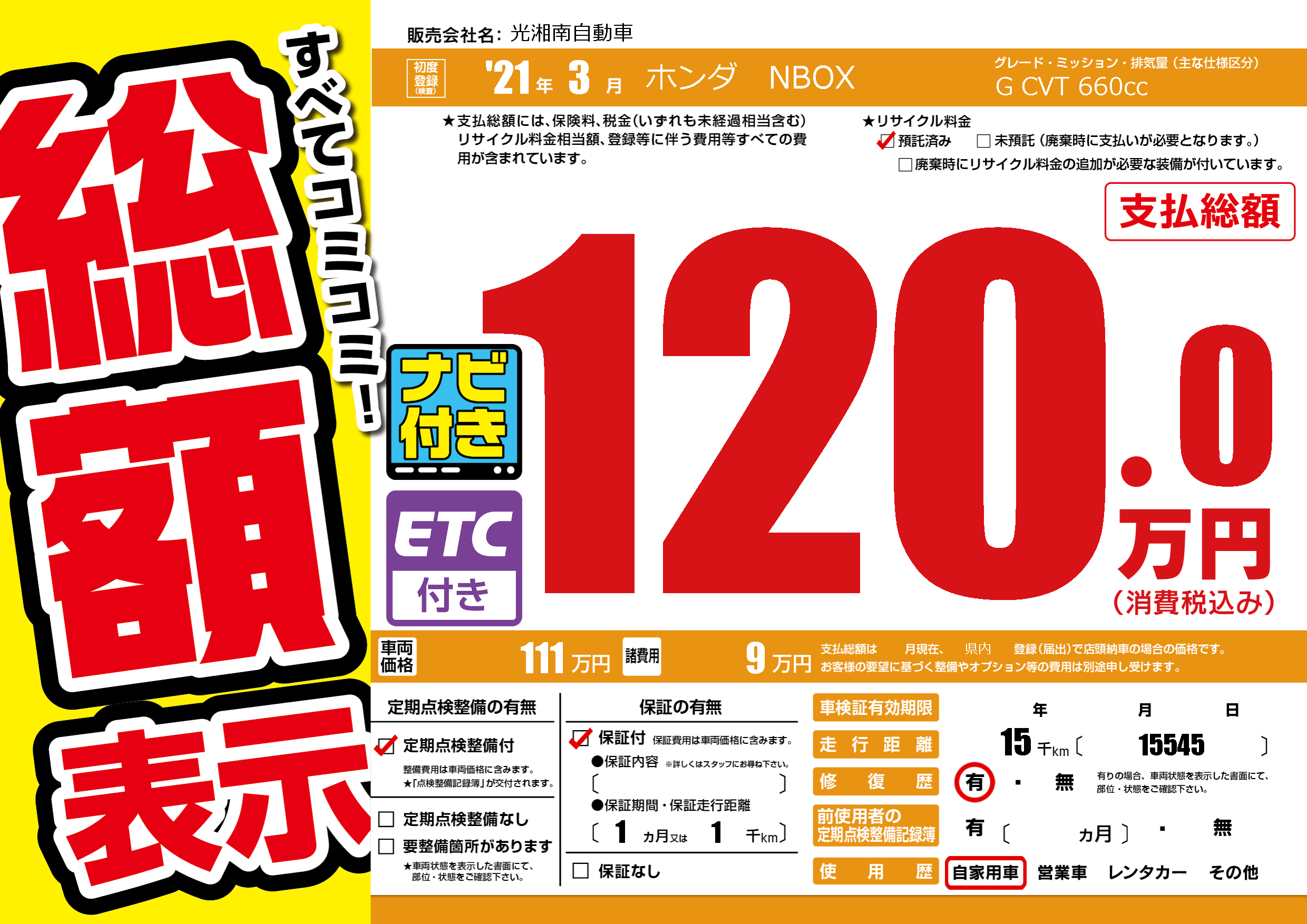 | 定期点検整備 | 定期点検整備あり | ||